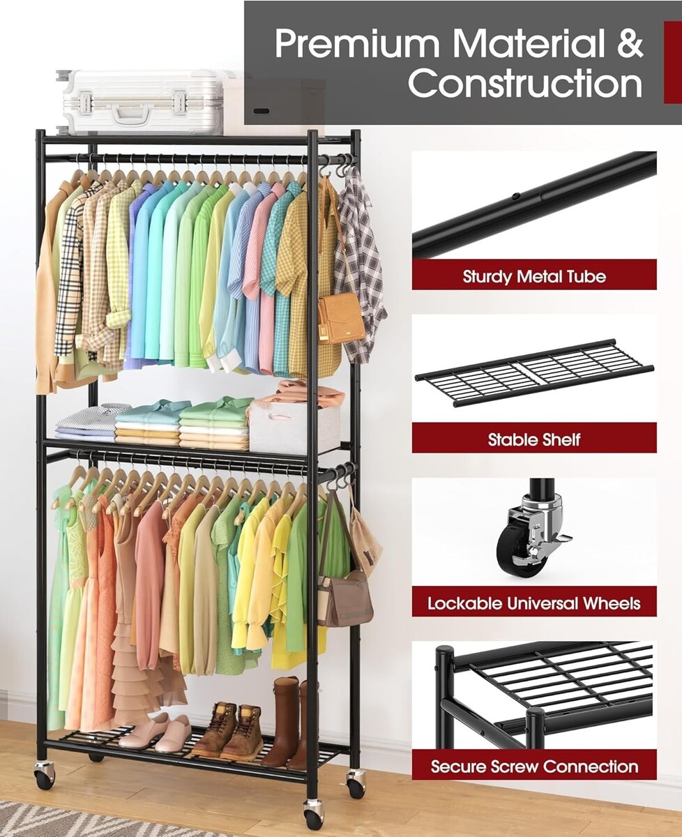 Elegant 79.5'' Black Clothing Rack with Shelves & Wheels for Modern Homes