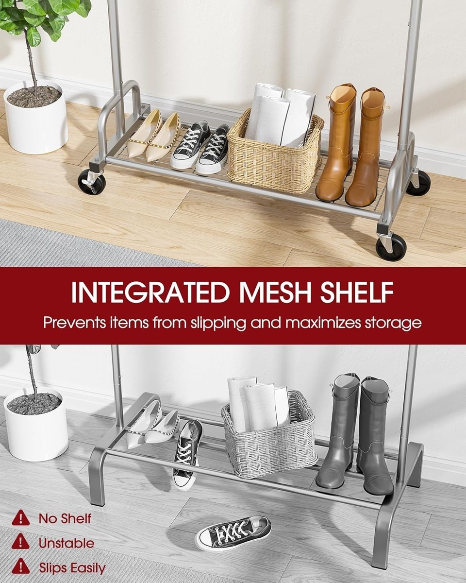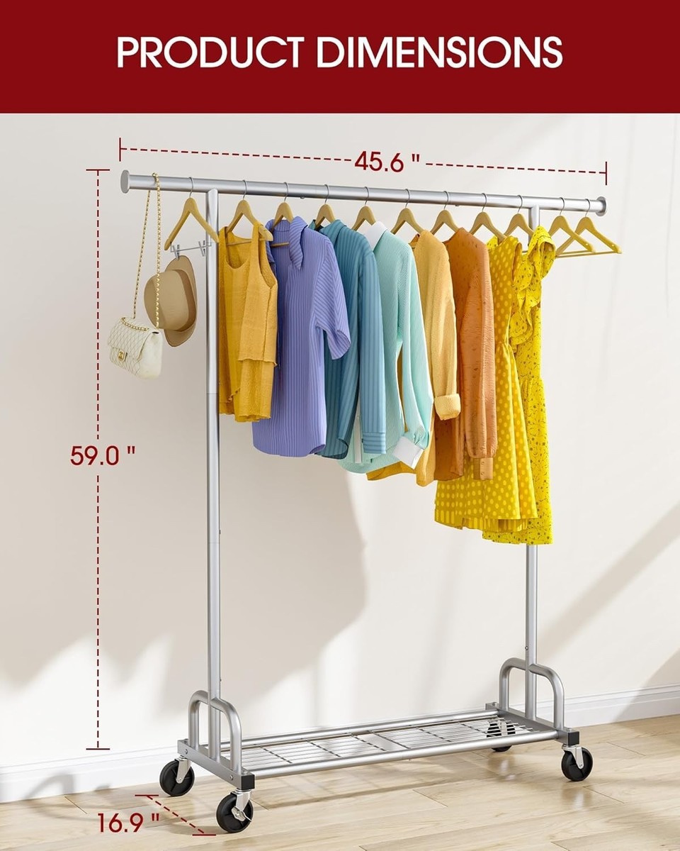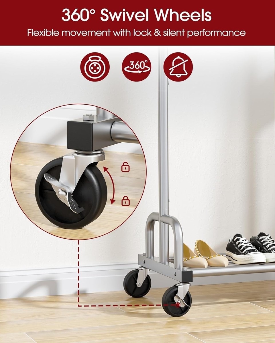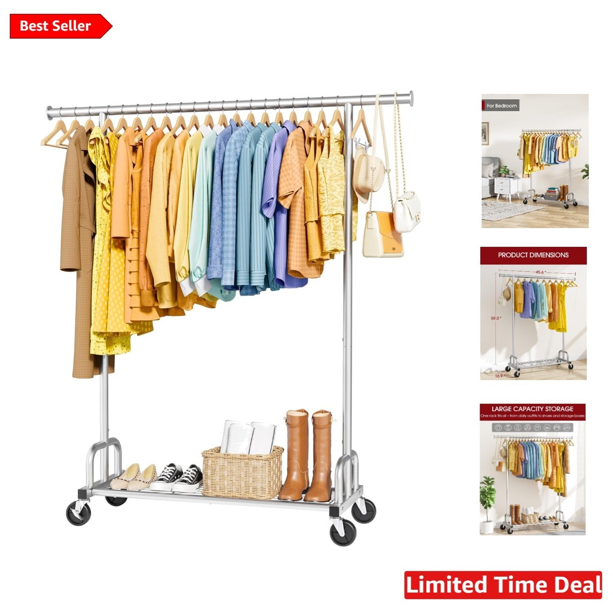 Versatile Clothing Rack with Lockable Wheels - Perfect for Laundry or Closet