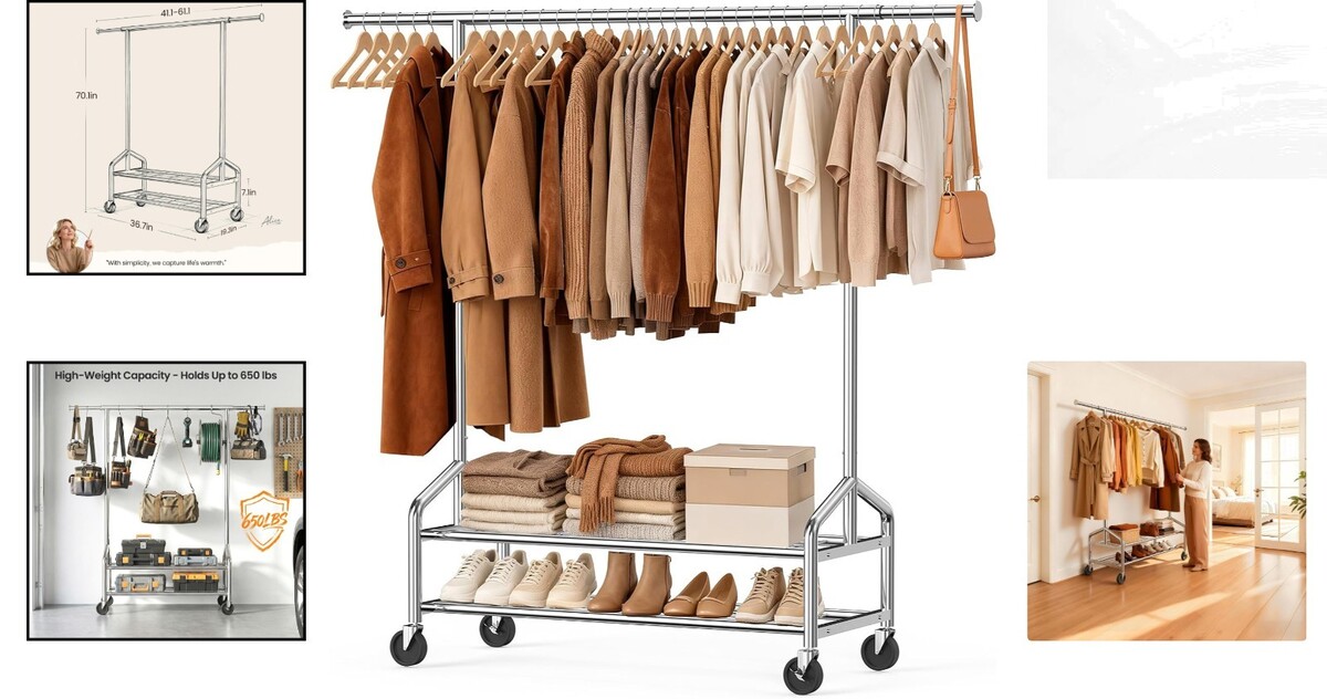 Heavy Duty 650 lb Capacity Rolling Clothes and 35 similar items