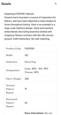 Pierre Frey F2927001 Darjeeling Floral Embroidery Linen/Silk Fabric 95x52
