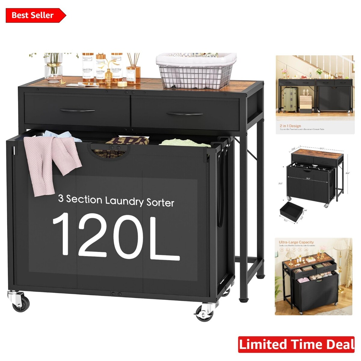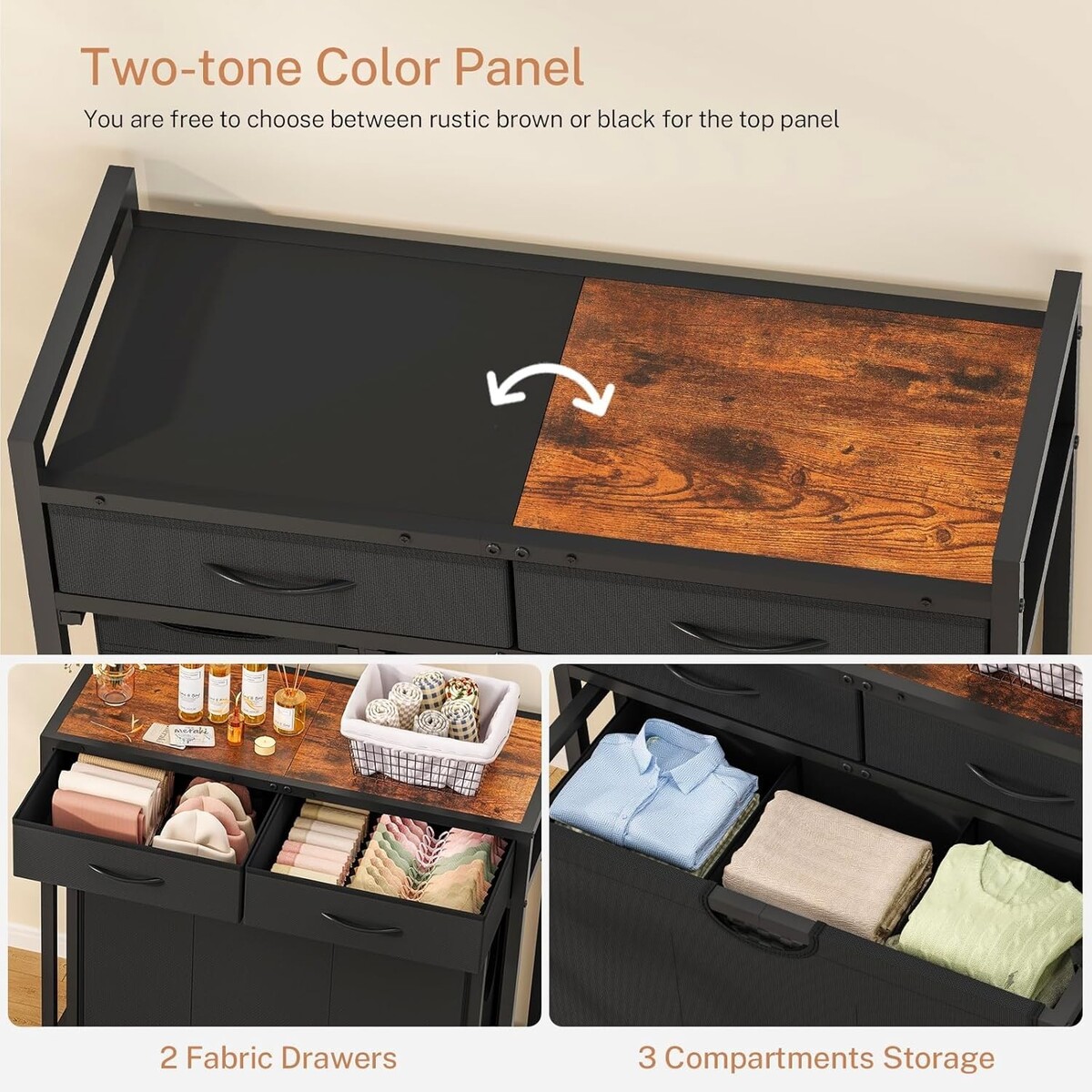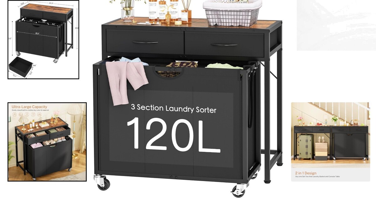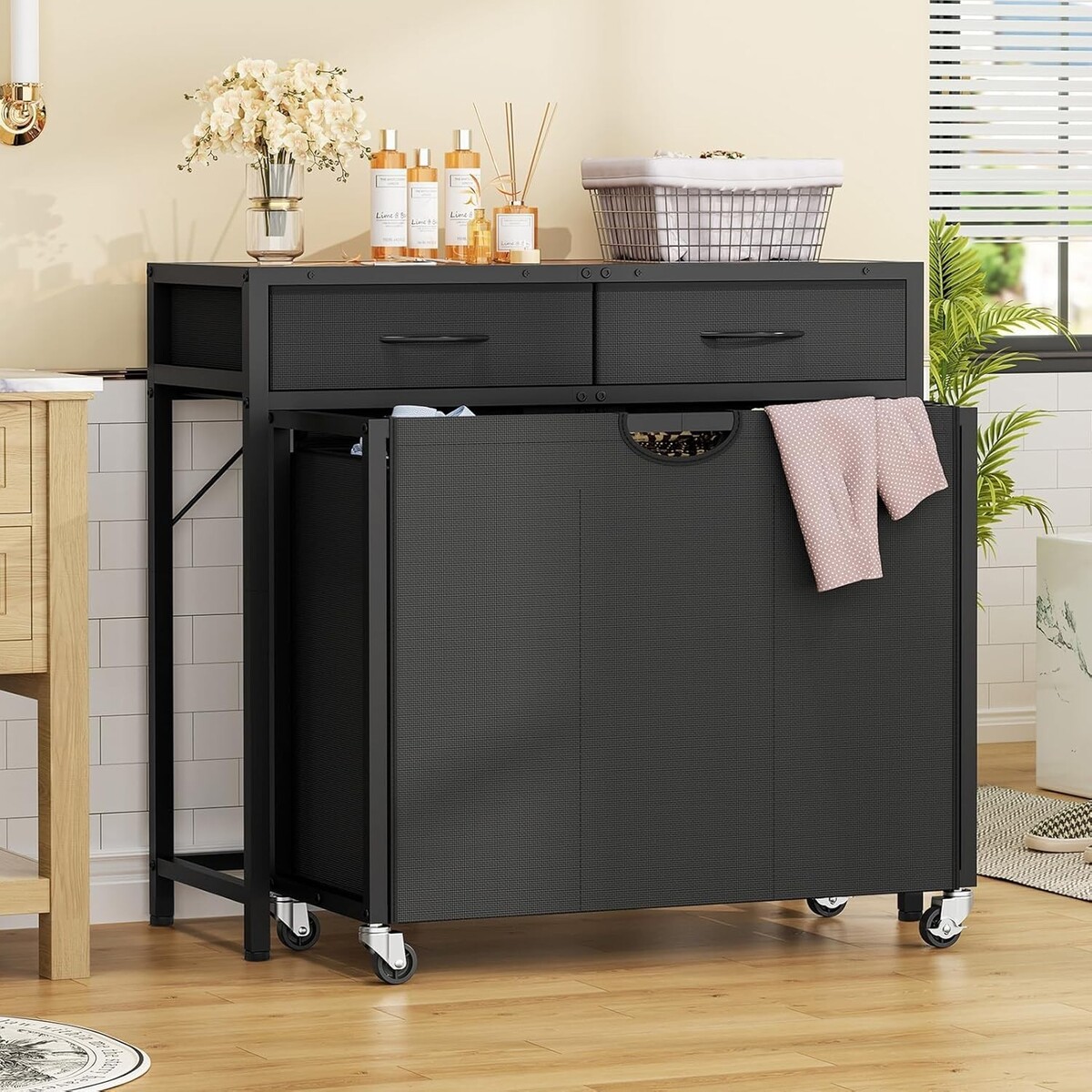 Versatile Laundry Hamper with Wheels and Two Drawers for Effortless Organization