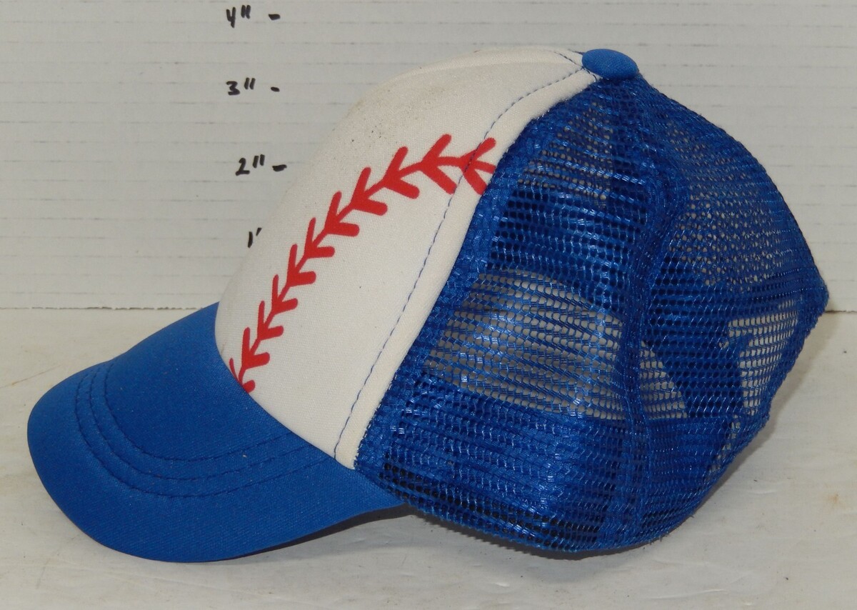 For Sale is a rare and hard to find Kids Baseball Hat Cap Adjustable Blue Red white. its In good USED Condition as pictured. no rips tears just some minor handling wear. Please ask Any and All Questions prior to purchasing. Fast Same or Next day shipping with Free Delivery Confirmation within the U.S. Payment Due within 7 days of purchase (if you need more time please let us know In advance) we love to combine shipping is always a Yes and Most of the time Additional Items Ship for free.