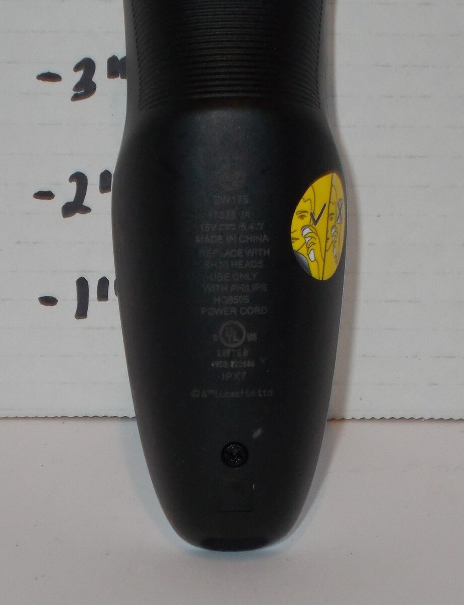 For Sale is a Philips Norelco SW175 Star Wars Edition Storm Trooper SHAVER HANDLE ONLY NO CHARGER OR BLADES/FOIL. It Has been tested and does work. its for the Shaver ONLY nothing else is included. Charger, Blades, Foil, Cap will all need to be purchased separately. Please ask Any and All Questions prior to purchasing. Fast Same or Next day shipping with Free Delivery Confirmation within the U.S. Payment Due within 7 days of purchase (if you need more time please let us know In advance) we love to combine shipping is always a Yes and Most of the time Additional Items Ship for free. SKU4MS