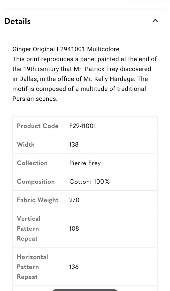Pierre Frey "Ginger" Indian Persian Miniature Print Cotton Fabric 95x53