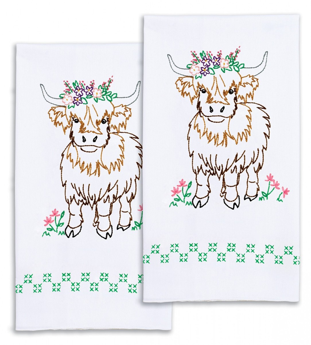 Highland Cow Hand Towels. Stamped for Cross-Stitch and Embroidery.