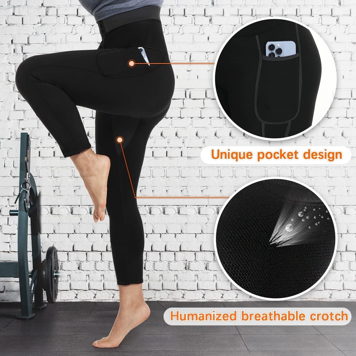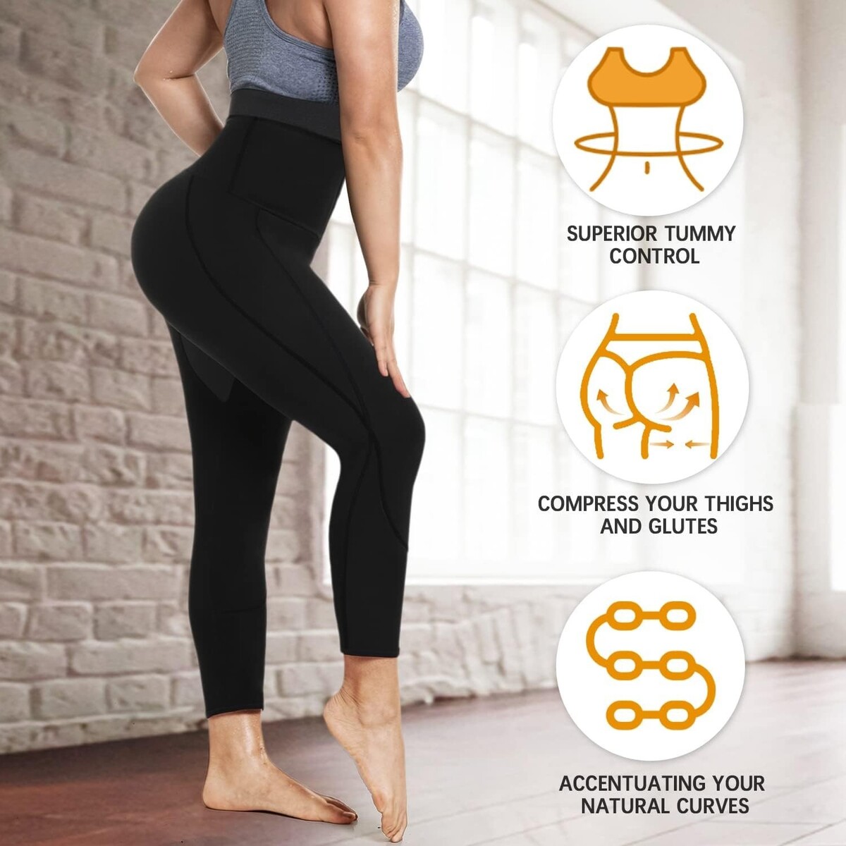 Breathable Sauna Leggings for Women - High Waist Compression Pants with Pockets