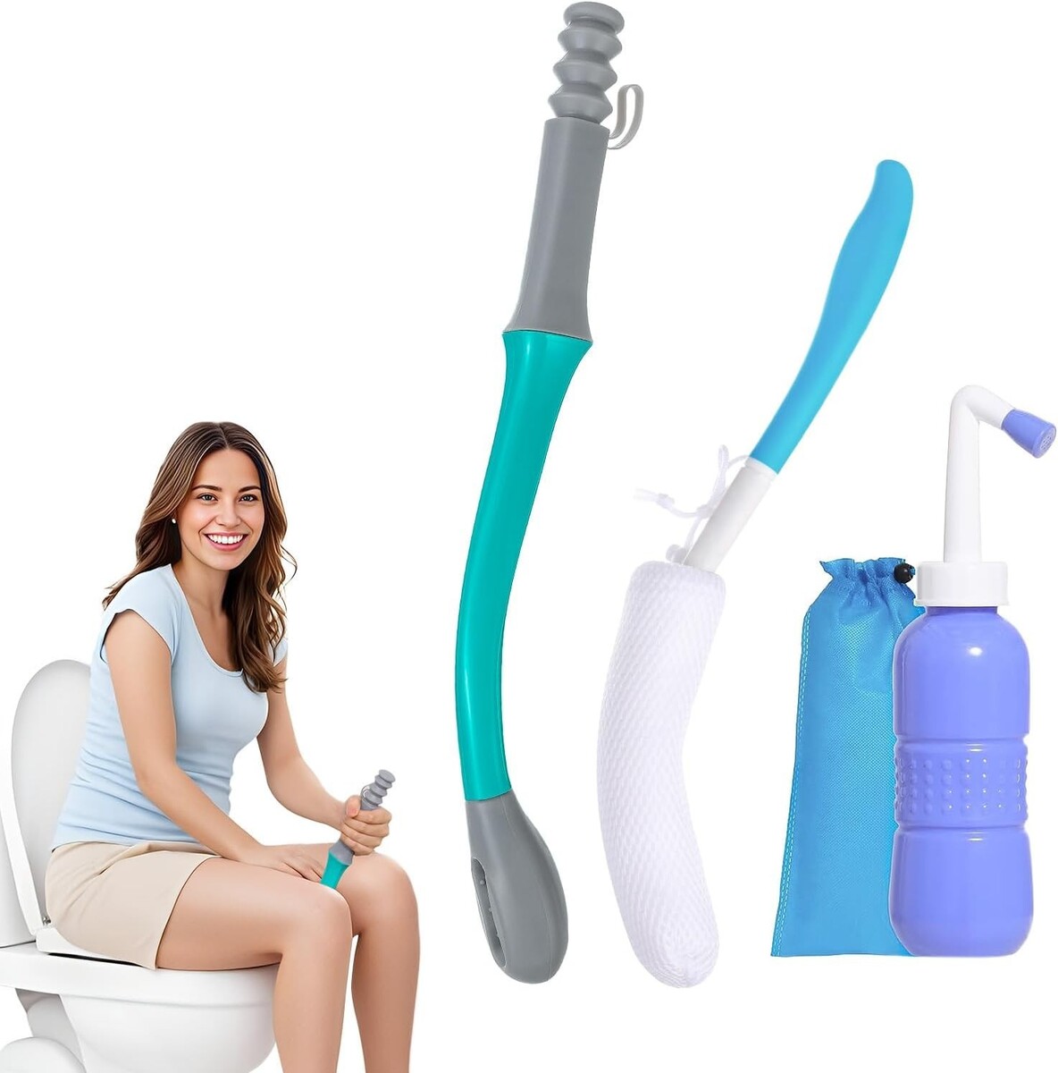 Affordable 4 Piece Set: The package includes a curve handled brush, portable bidet, toilet aids for wiping, and a storage bag ? all at a more affordable price compared to purchasing separately.