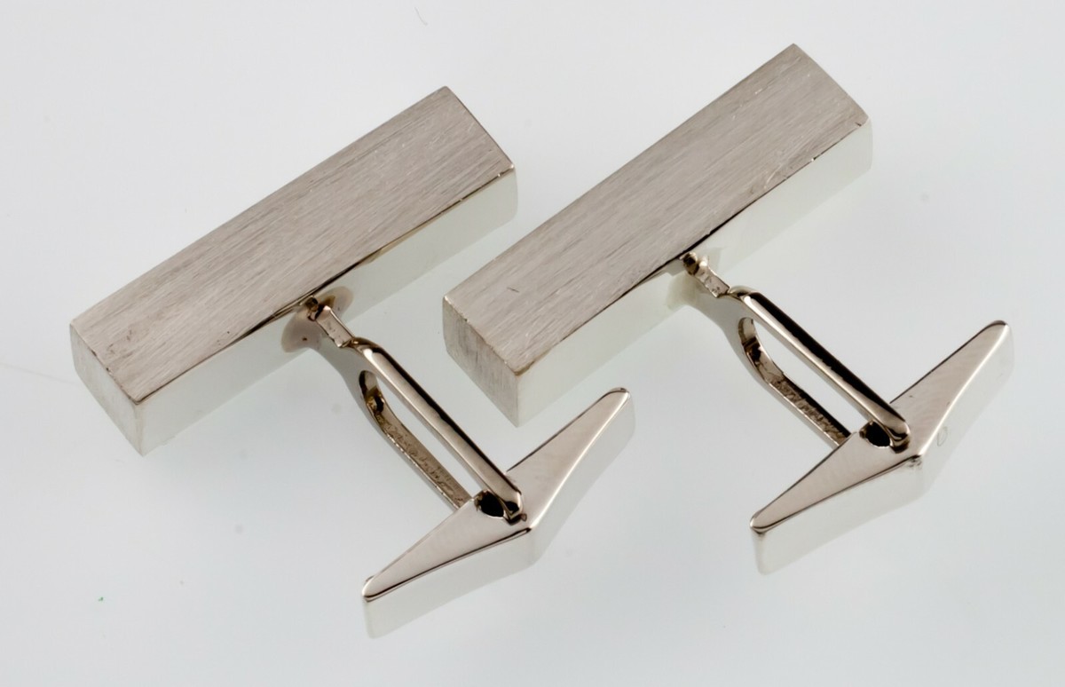 Chaque bouton de manchette comporte une tige rectangulaire en argent