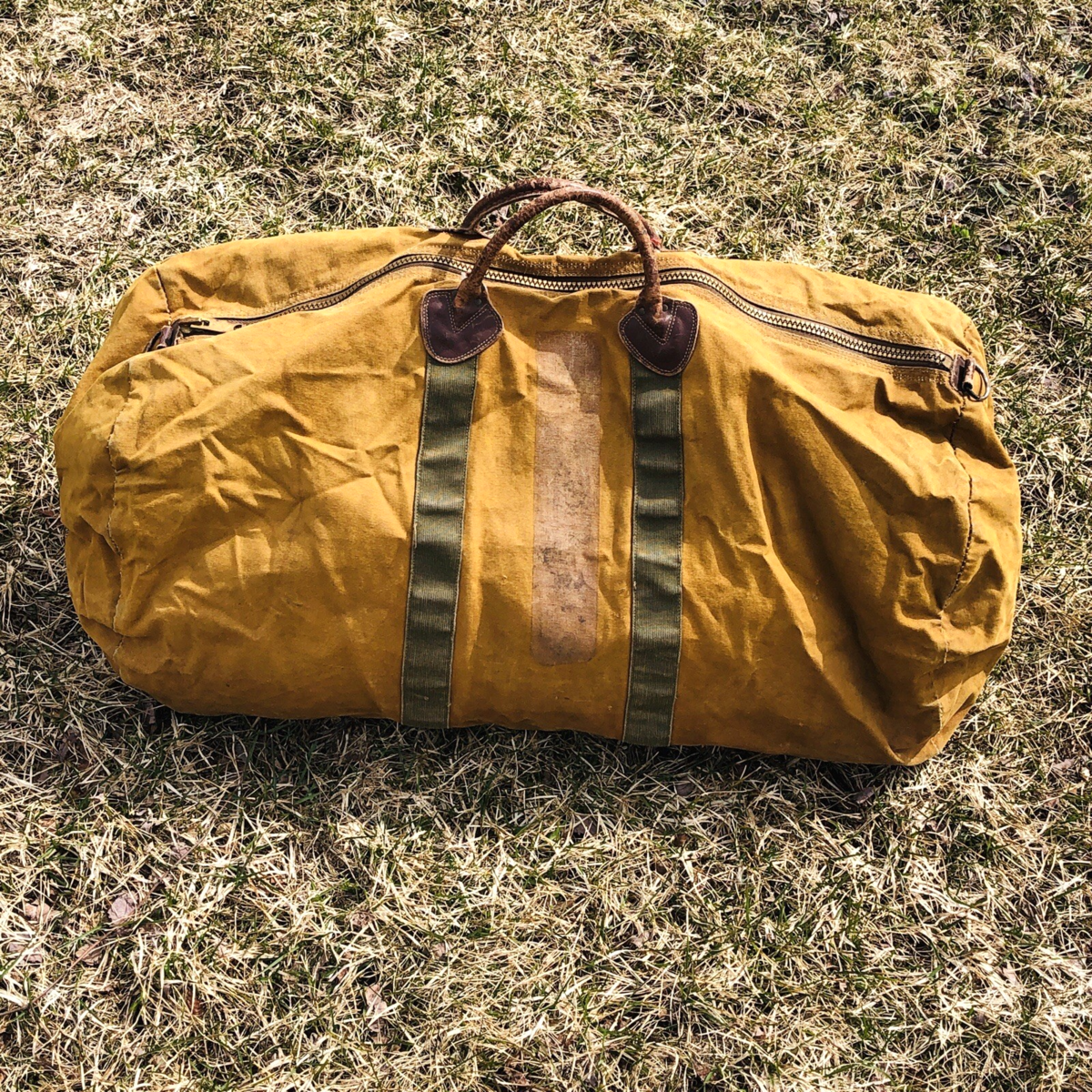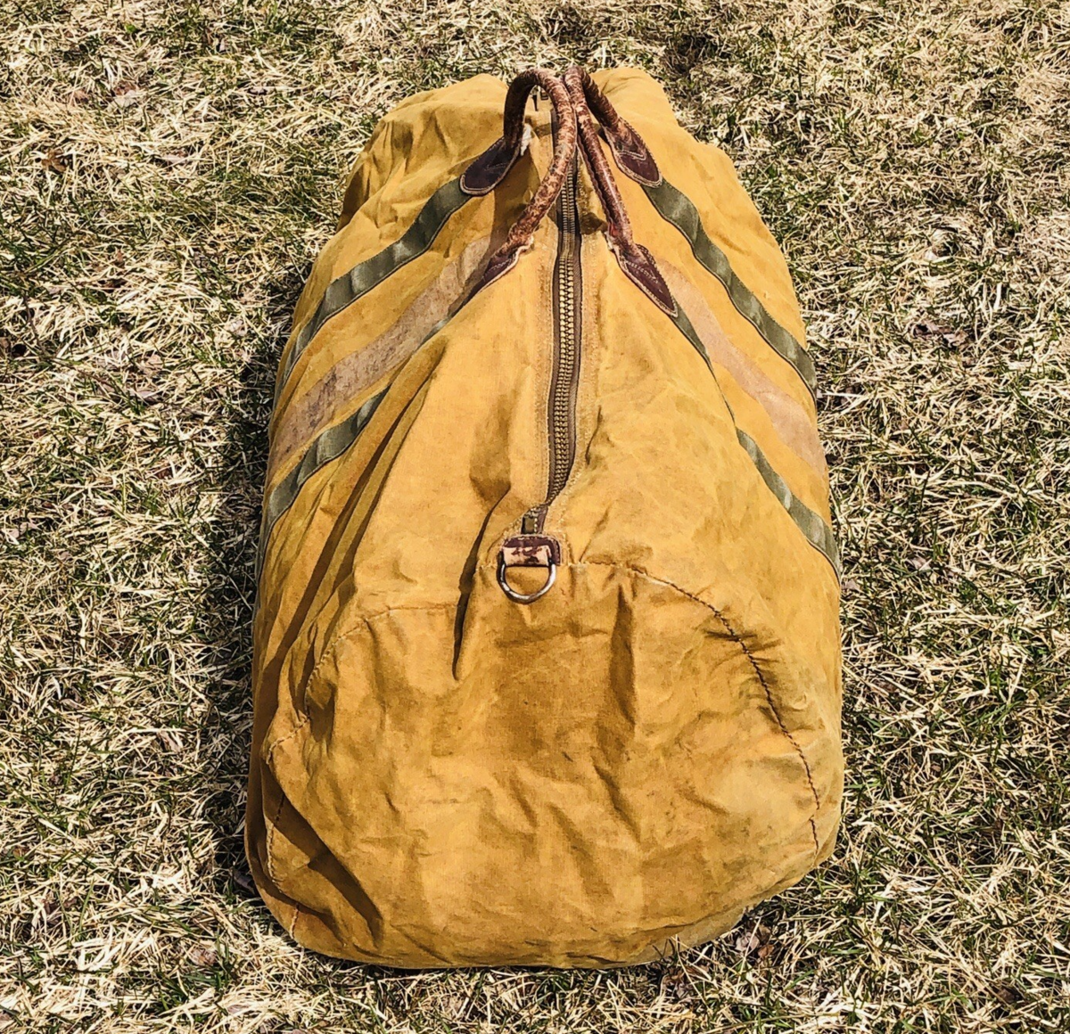 Vintage 1940s LL Bean Canvas Sportsman Large Duffle Bag with Leather Trim