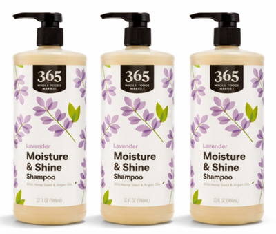 3x 365 by Whole Foods Market, Moisture Shine Shampoo with Hemp Seed Argan Oil, Lavender Scent, 32 Fl Oz