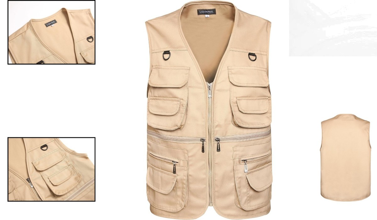 Features: 12 different size functional pockets,D-rings for hanging items,Front zipper,Sleeveless,V-neck,Quick drying,Wind resistant,Anti pilling,Wrinkle resistant,Lightweight fabric,Zipper pockets,Flap fastened pockets