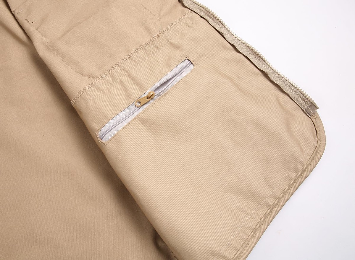 Zipper pockets and flap fastened pockets ensure secure and convenient use