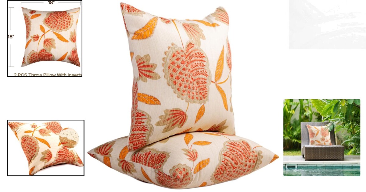 Chic Water-Resistant Beige Throw Pillows with Autumn Leaf Pattern - Set of 2