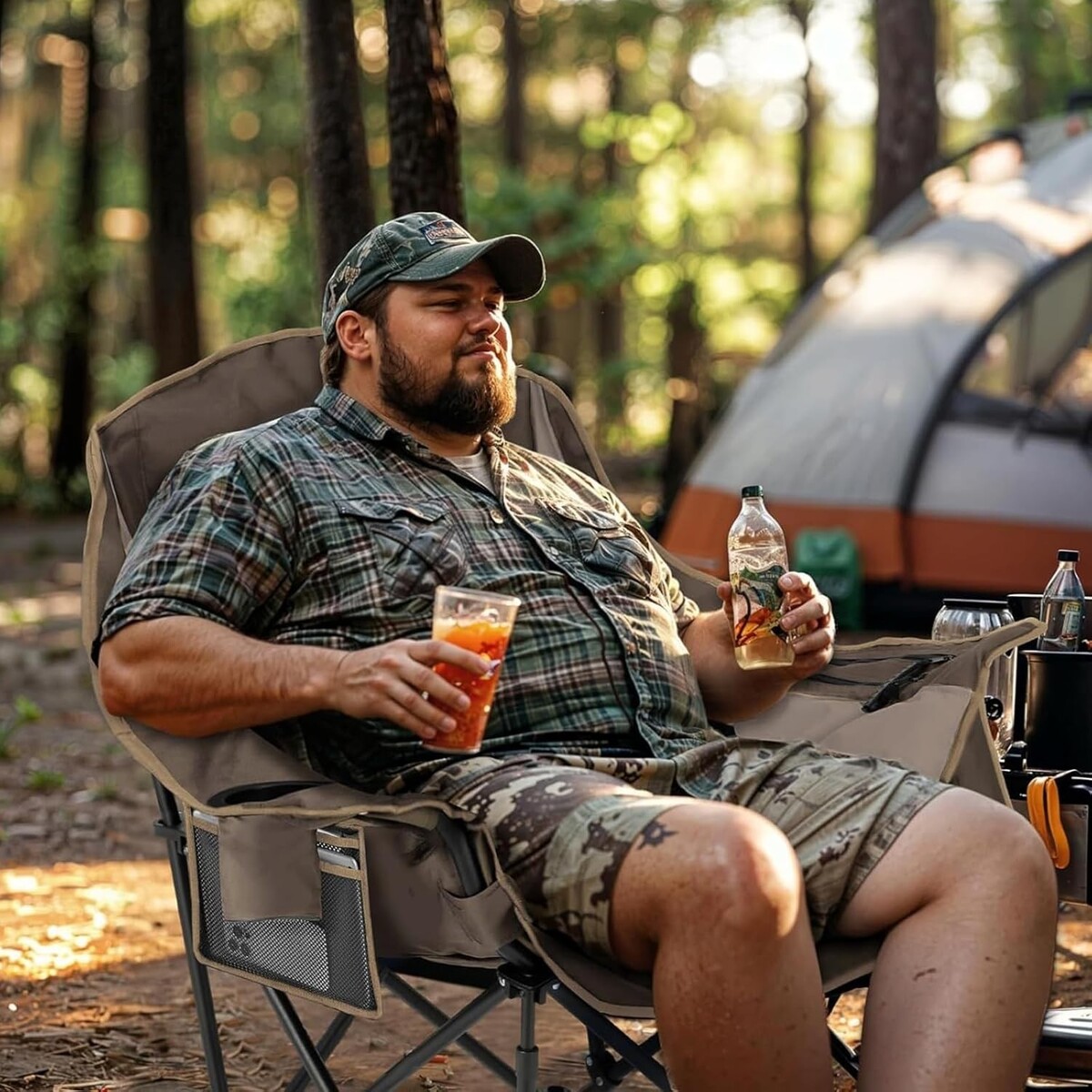 XL Portable Camping Chair - 400lbs Support, Cup Holder & Durable Oxford Fabric