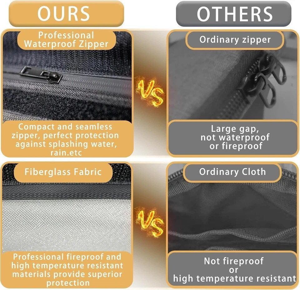 Orikithem Fireproof Document Bag 2200°F w/ Zipper & Reflective Strip Waterproof