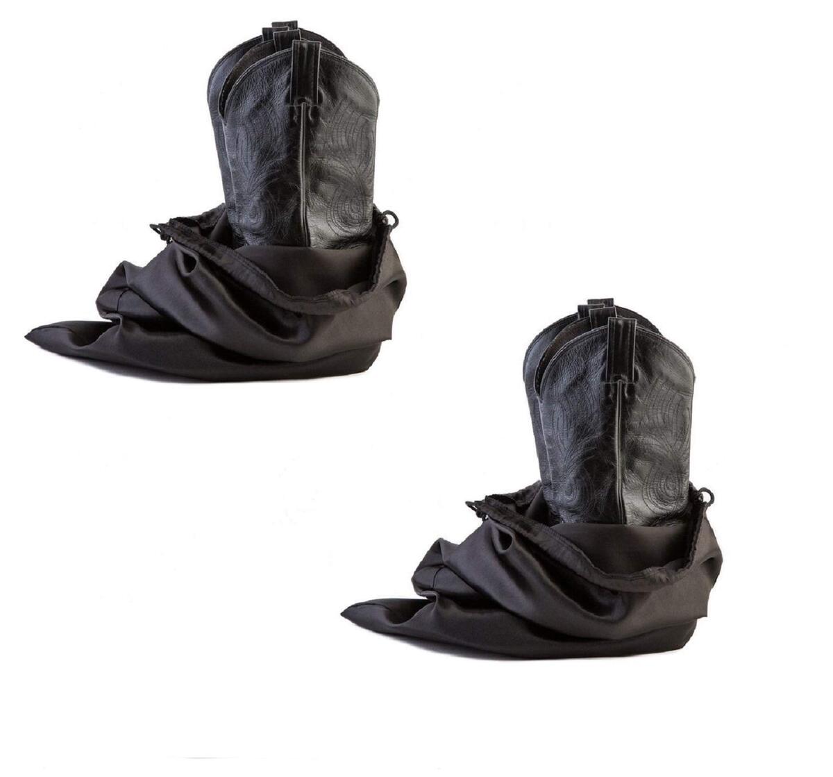 Water Repellent Soft Satin Ballistic Nylon 4 Black Balistic Nylon Boot Bags fitting 2 pairs of Boots all. The 18"x 24". Bags consist of water repellent soft ballistic nylon. High-performance fabric resistant to abrasions, tears, and scuffs. Protects your shoes against scuffs and scraps when storing or traveling. Made with heavy-duty nylon draw with Locking Drawstring for closing the top and for easy carrying.