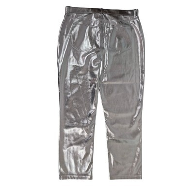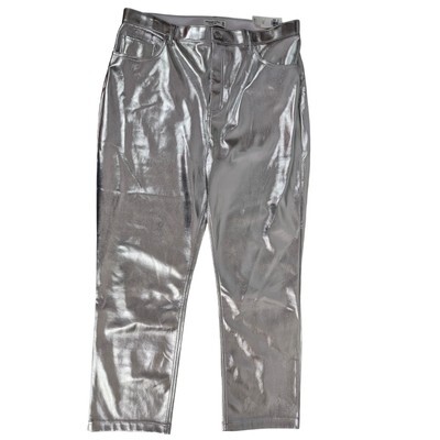 NWT Abercrombie & Fitch 90s Straight Curve Love Silver Vegan Leather Jeans 18