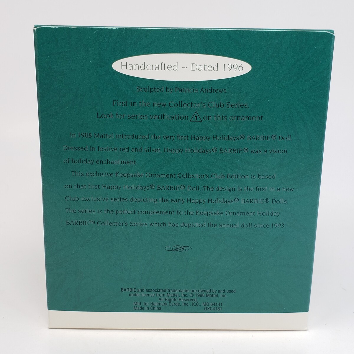 VINTAGE 1996 HALLMARK MATTEL BARBIE COLLECTORS CLUB KEEPSAKE CHRISTMAS ORNAMENT
