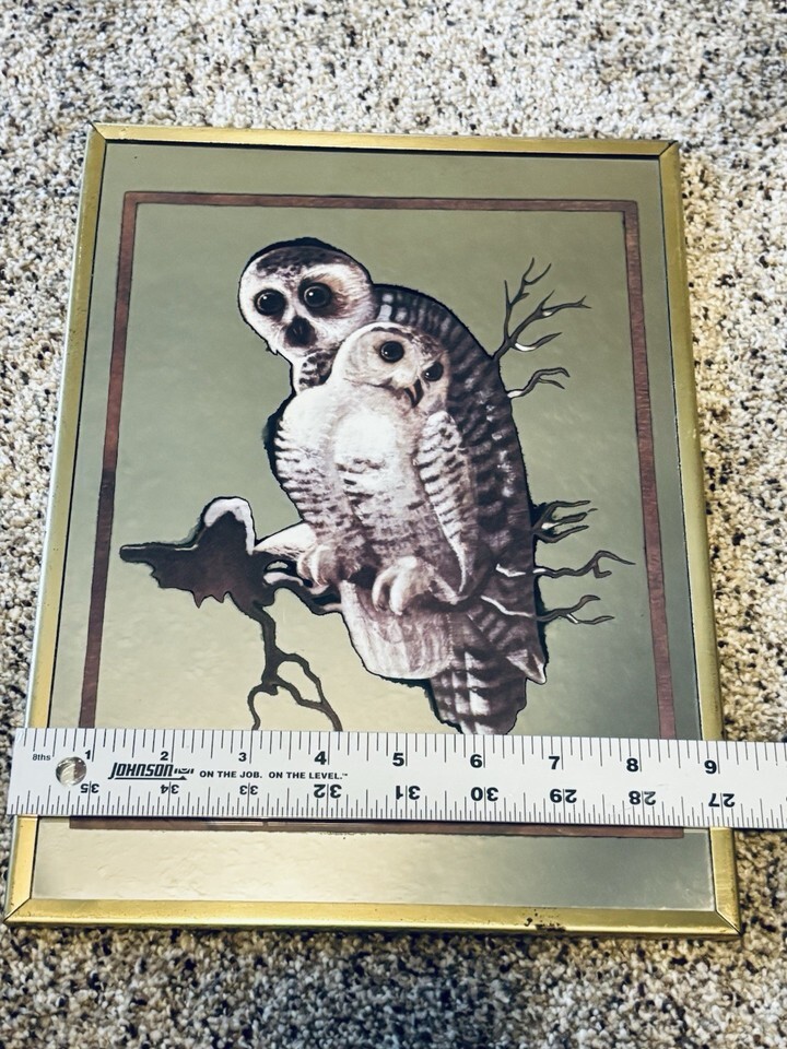 Vintage Snowy Owl Wall Mirror Brytone 2D Etched Glass Art Retro MCM