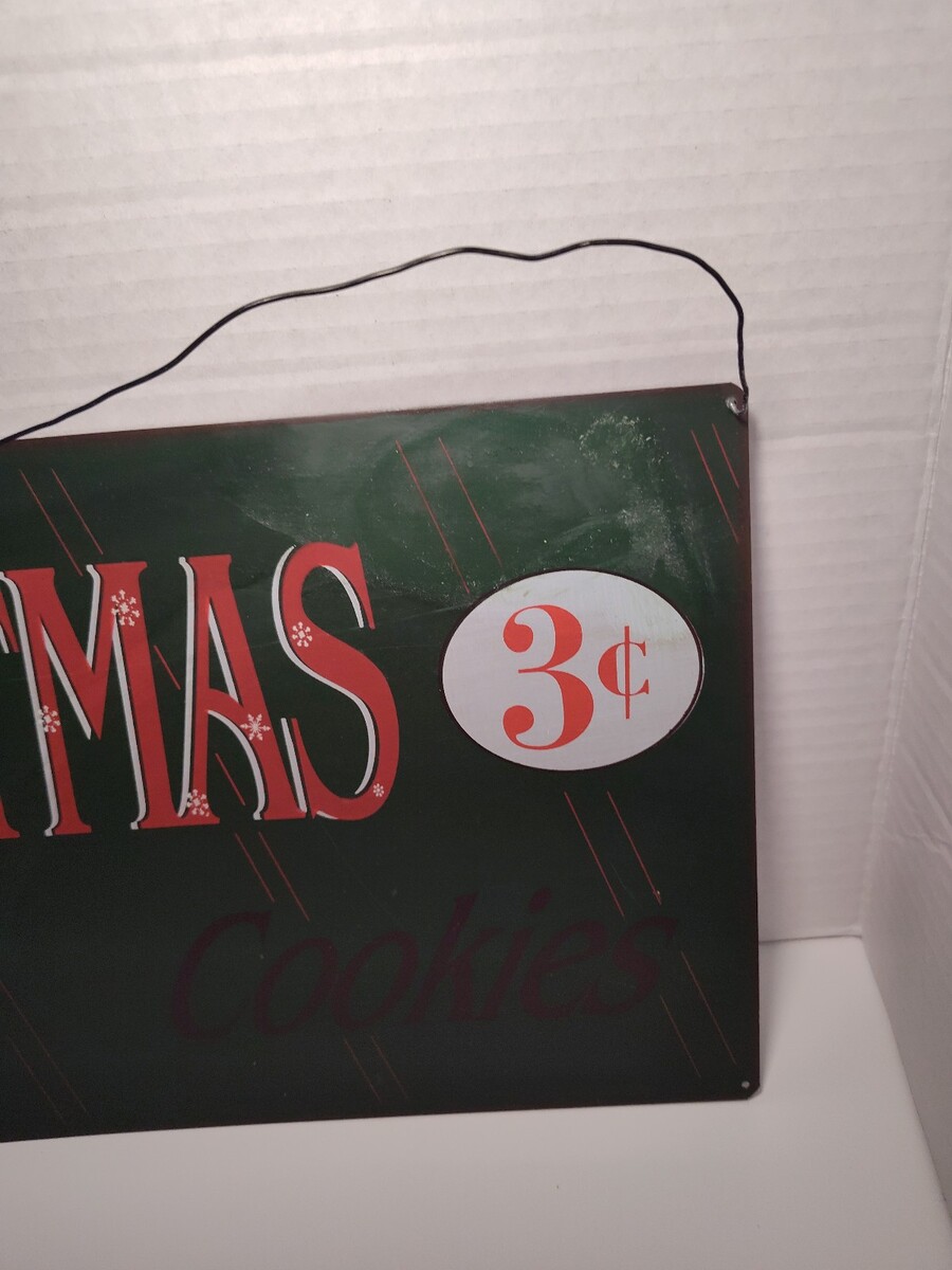 Vintage Style Christmas Cookies 3¢ Metal Tin Sign Holiday Wall Décor 15"x8"