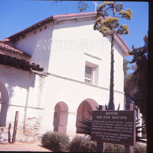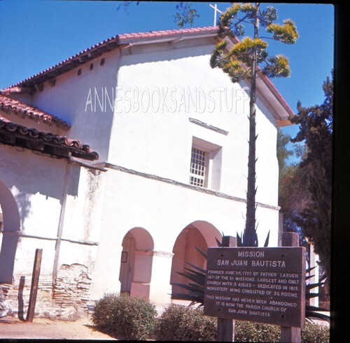 70 mm color slides lot of 3* MISSION SAN JUAN BAUTISTA sign, Garden, PLAZA HALL