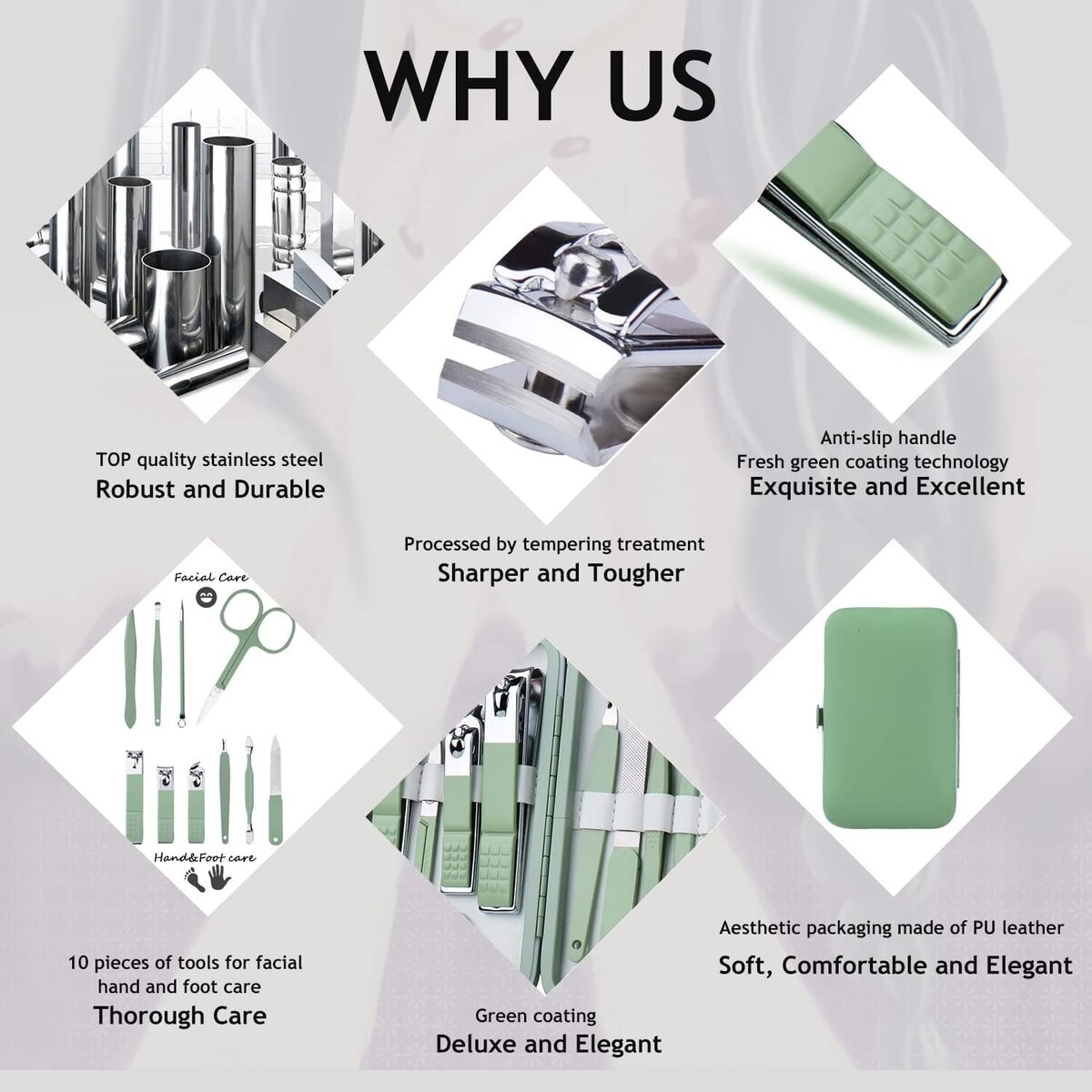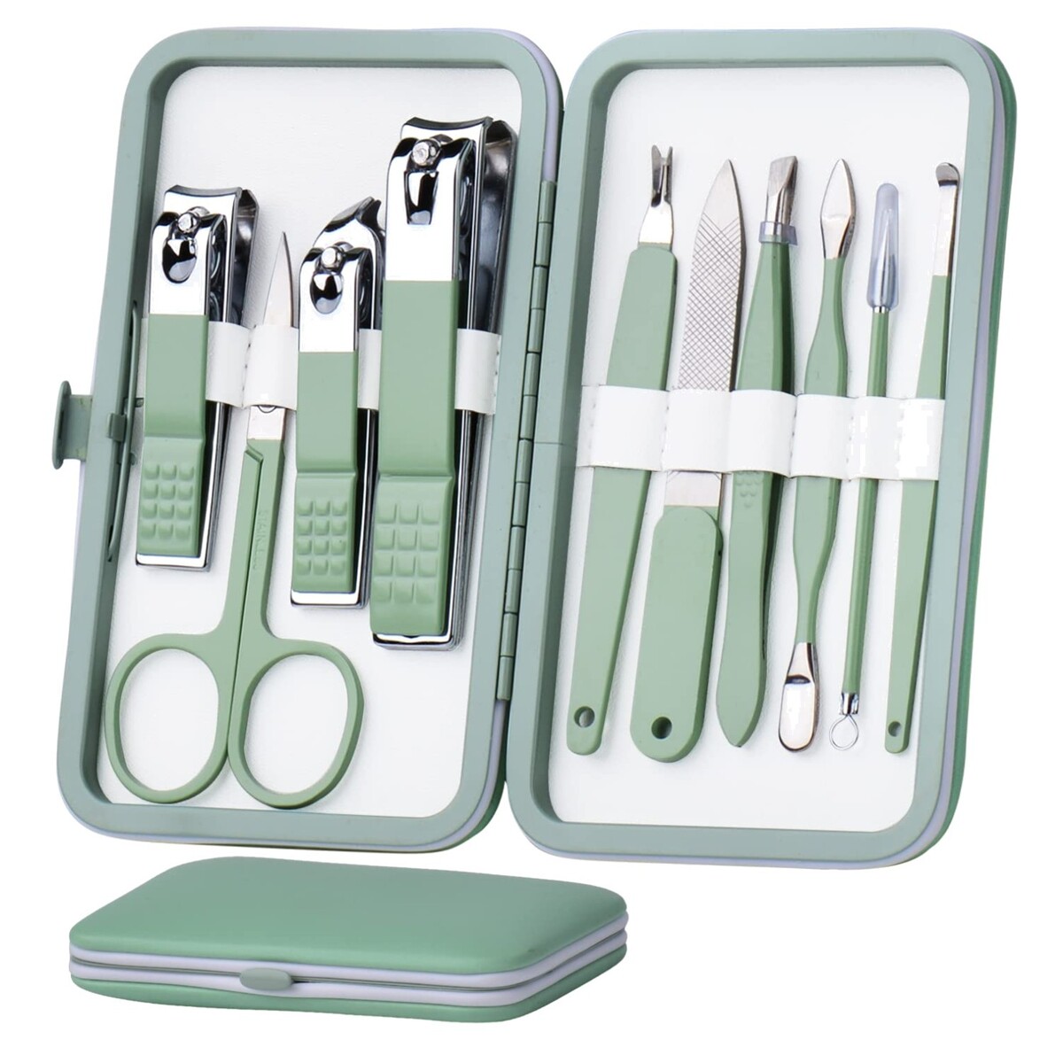 Elegant 10-in-1 Stainless Steel Manicure Kit with Jade Green Case