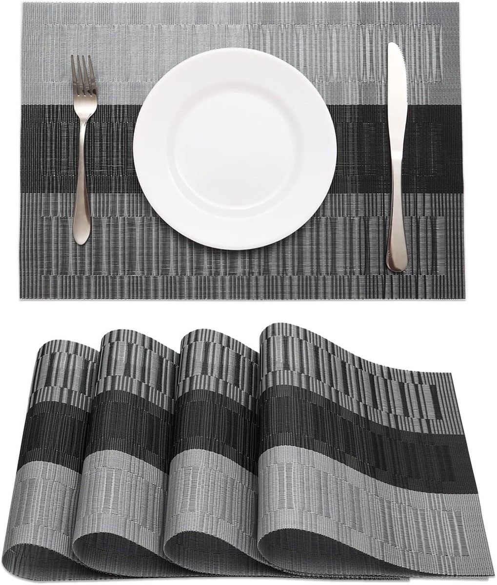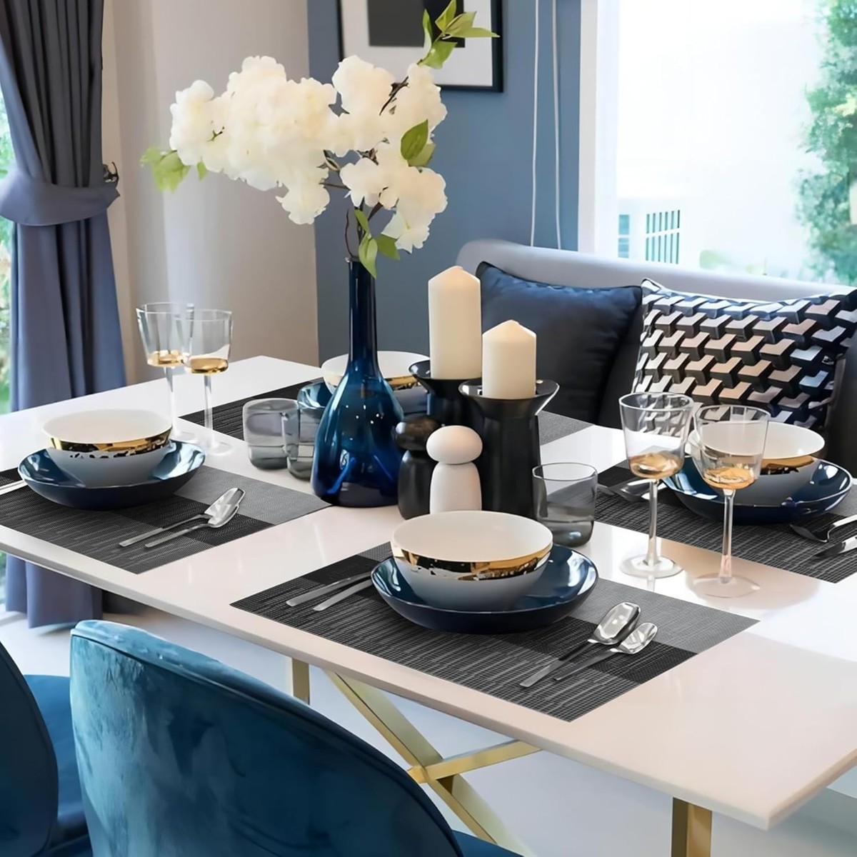 4 Pack Black Woven Placemats - Non-Slip, Heat-Resistant for Indoor Outdoor