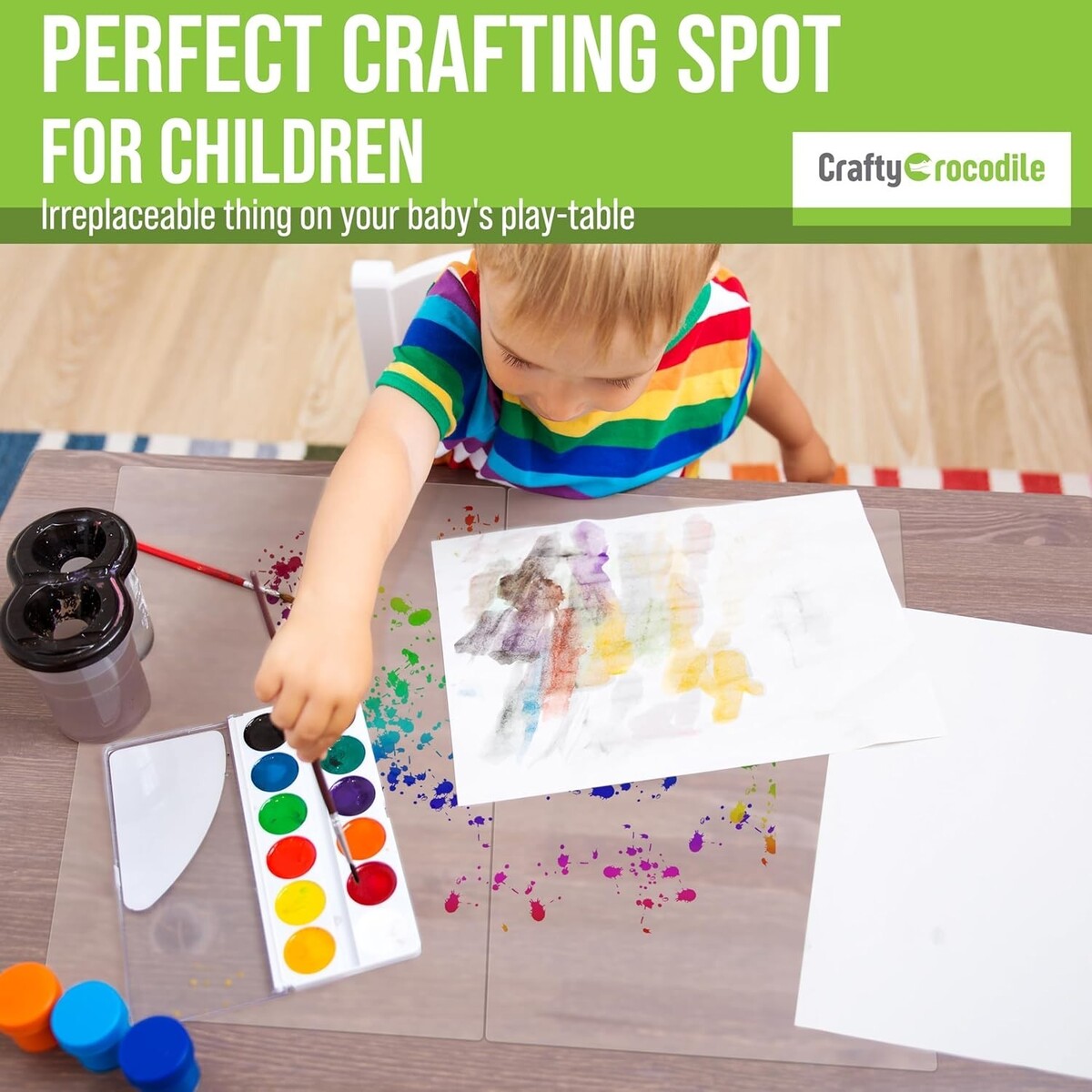 Great crafting spot for children, protecting surfaces during drawing or modeling activities.