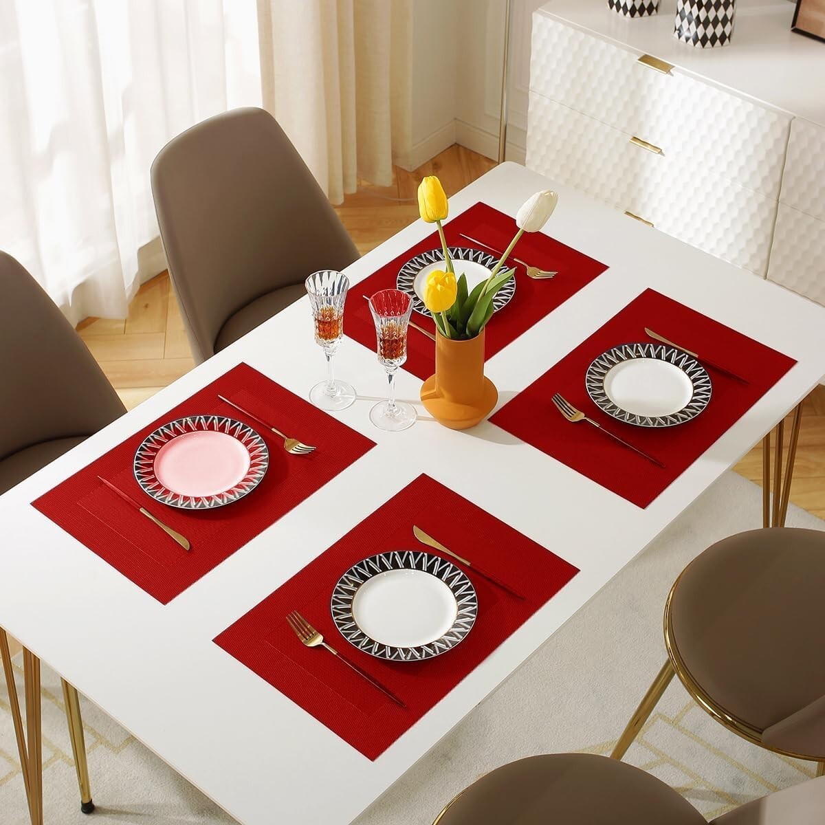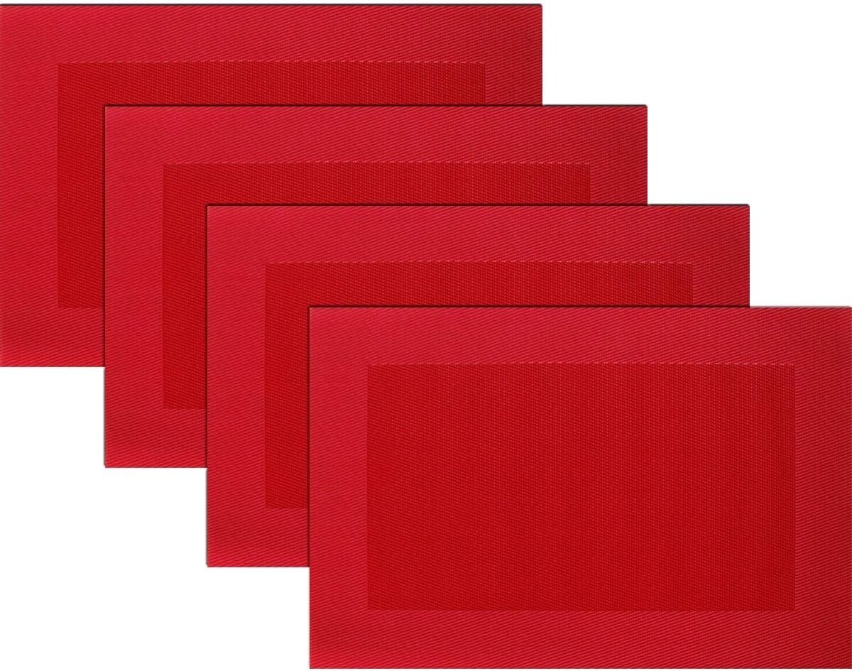 Elegant Heat-Resistant Vinyl Placemats Set of 4 - Washable Table Mats in Red