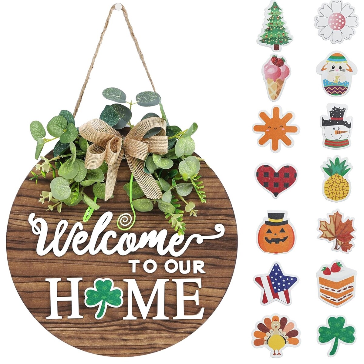 Elegant Wood Welcome Sign with Pinecones - Seasonal Wreath for -Round Charm