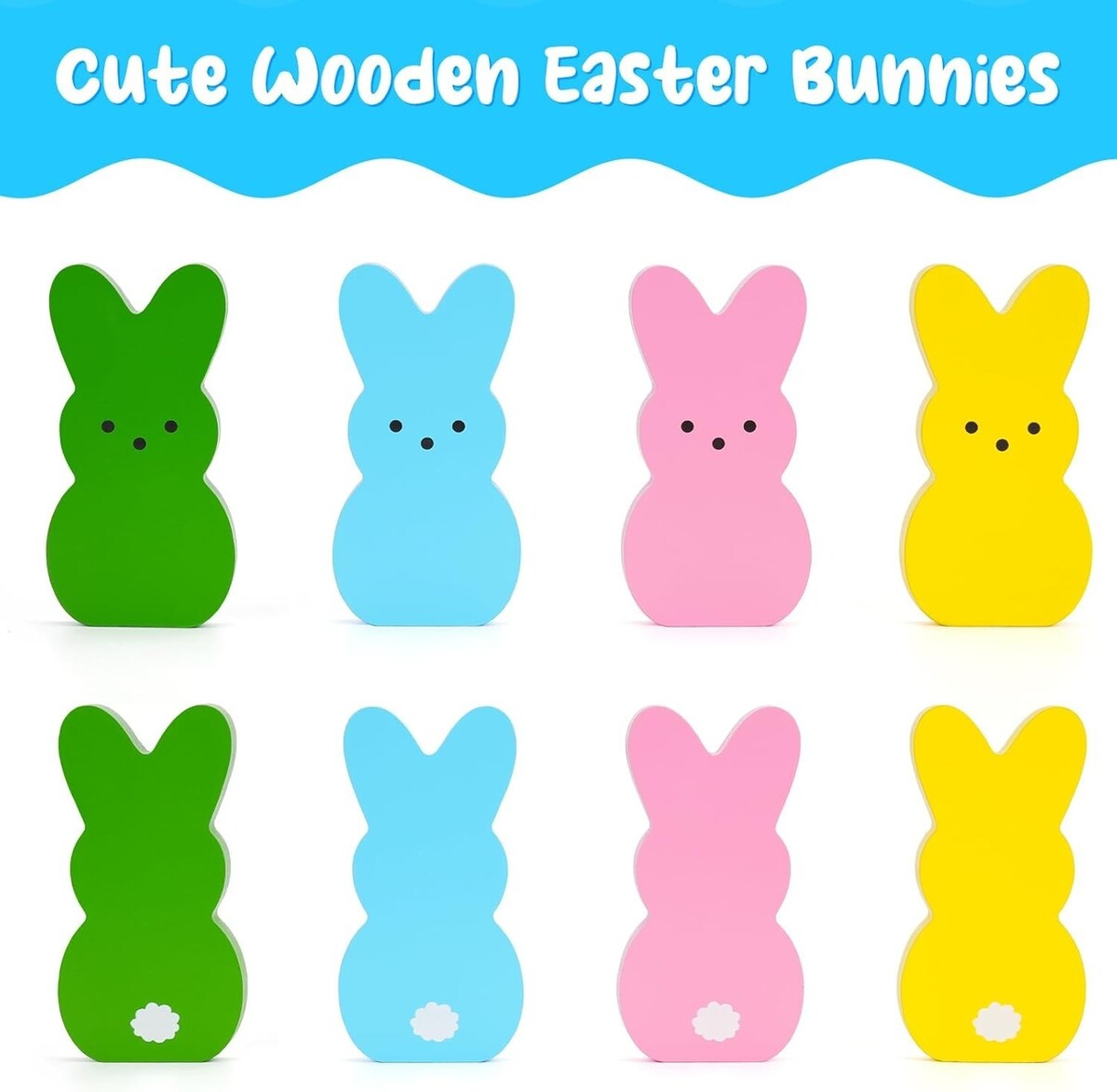 Charming 4-Pc Wooden Bunny Decor Set in Pastel