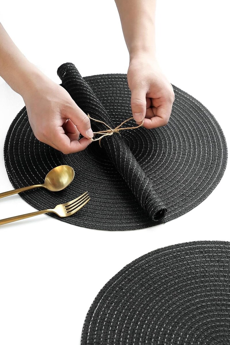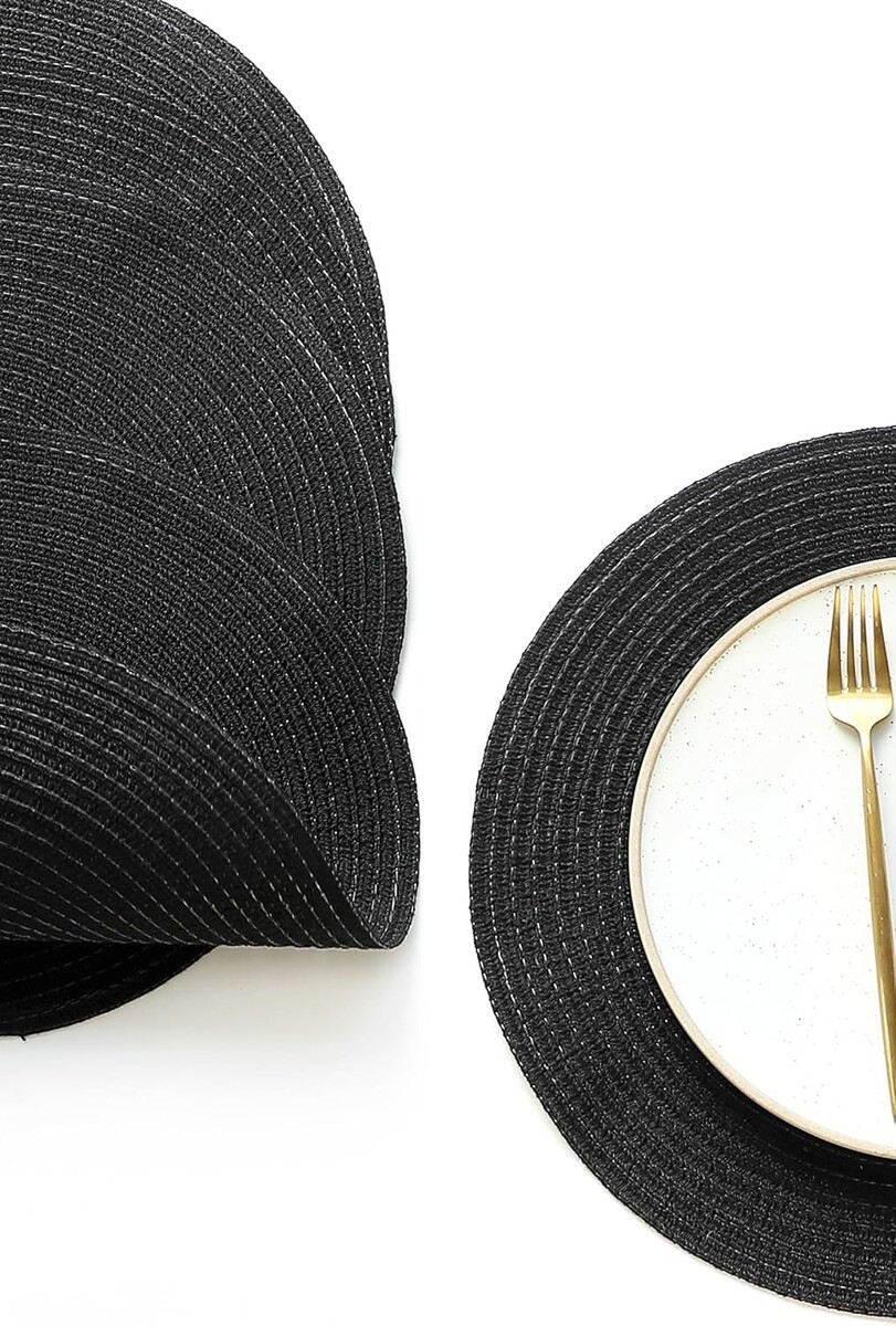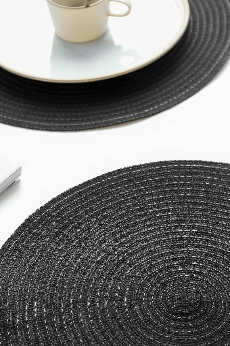 Elegant 15'' Round Braided Placemats Set of 4 - Washable Heat Resistant Decor