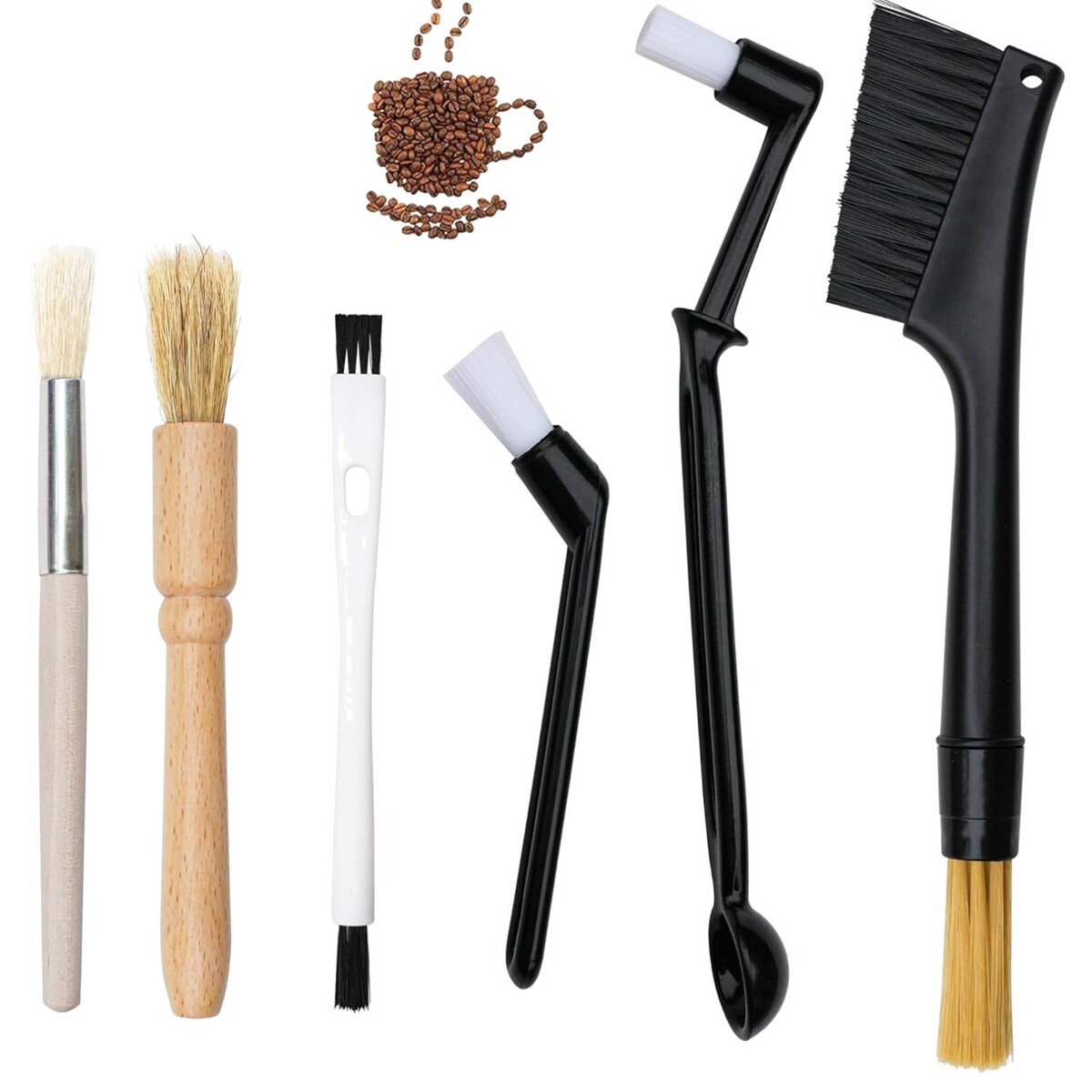Comprises of 4 nylon coffee brushes and 2 wooden coffee cleaning brushes.