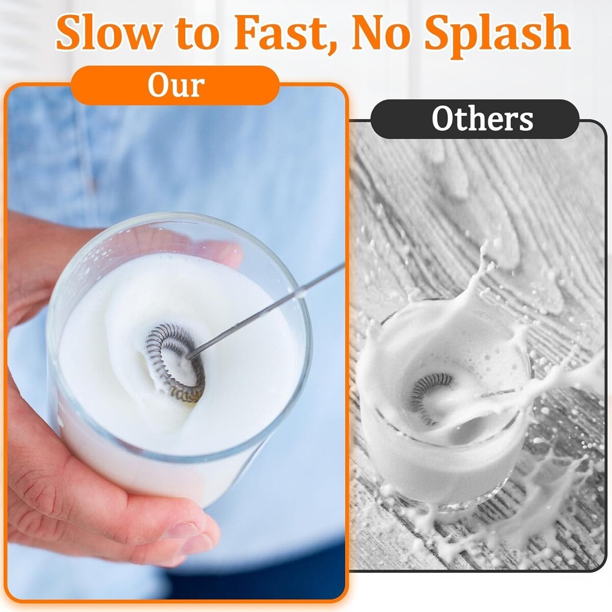 Powerful Fast Rechargeable Milk Frother with Stand: Crafted from durable ABS plastic and food-grade 304 stainless steel, this electric handheld mixer features an upgraded motor that delivers fast mixing and creates rich, creamy foam. Easy to clean?just rinse the whisk under water?and includes a chic storage stand for convenience.