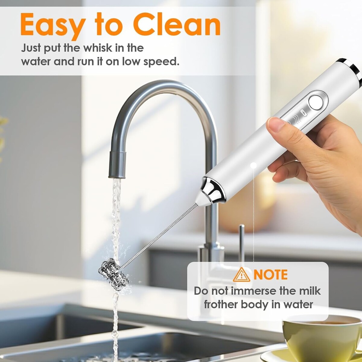 USB Rechargeable: Equipped with a built-in 1500mAh battery, this frother supports charging through laptops, power banks, and more. Ideal for home, office, or outdoor adventures.