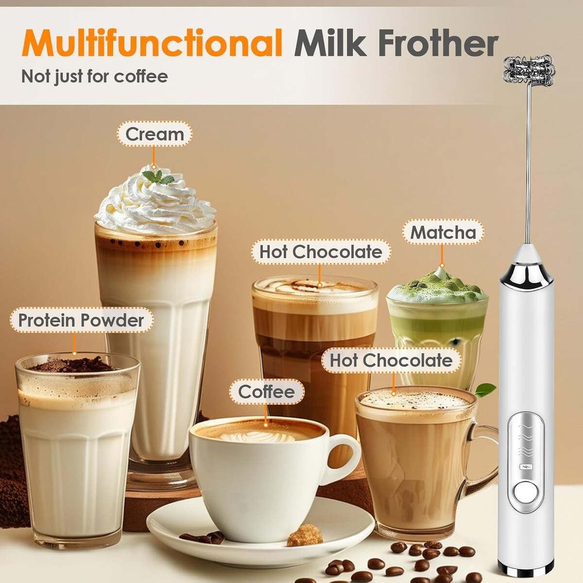 USB Rechargeable Milk Frother with Adjustable Speeds - Perfect for Lattes