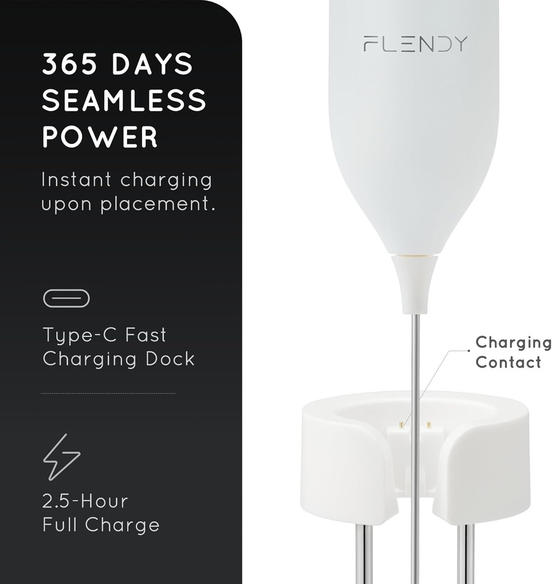 Innovative Design: The frother comes with a 2-in-1 USB-C charging bracket that keeps your frother hygienically stored and can be placed on a counter or wall.