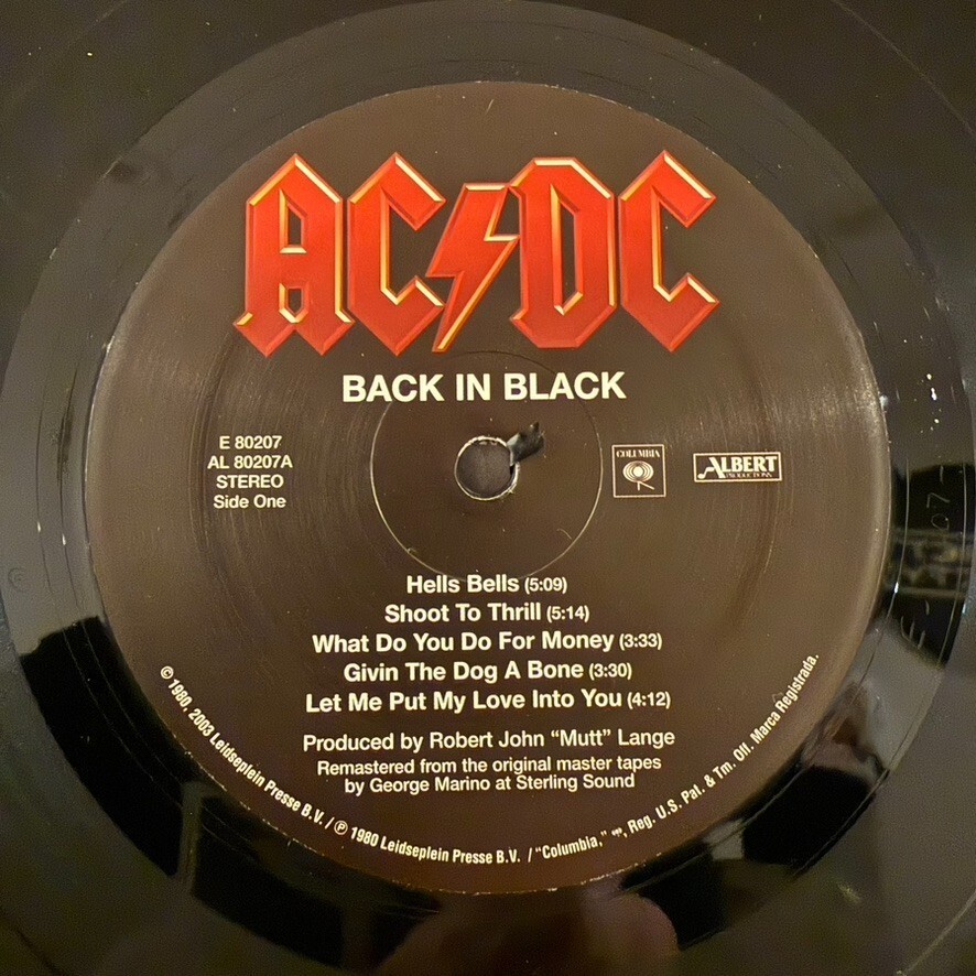 AC/DC Back In Black Vinyl LP Coumbia E 80207 180g Remastered 2003 Hells Bells