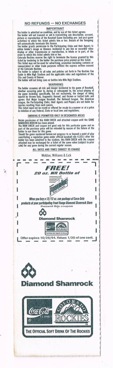 1994 Astros @ Rockies Full Unused Phantom and 50 similar items