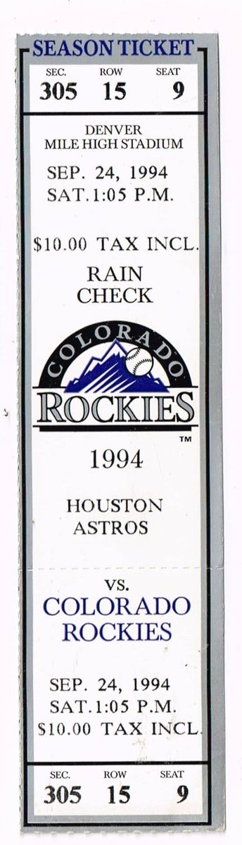 1994 Astros @ Rockies Full Unused Phantom Ticket September 24th Strike Year
