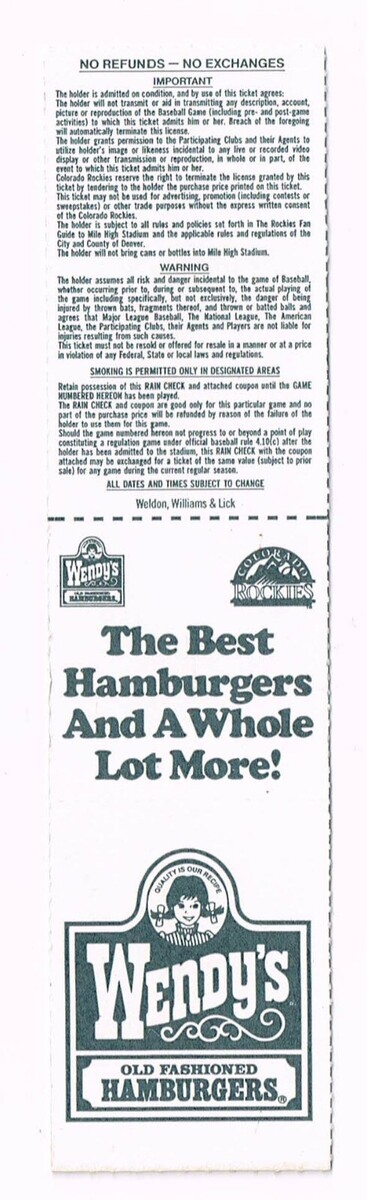 1994 Giants @ Rockies Full Unused Phantom and 50 similar items