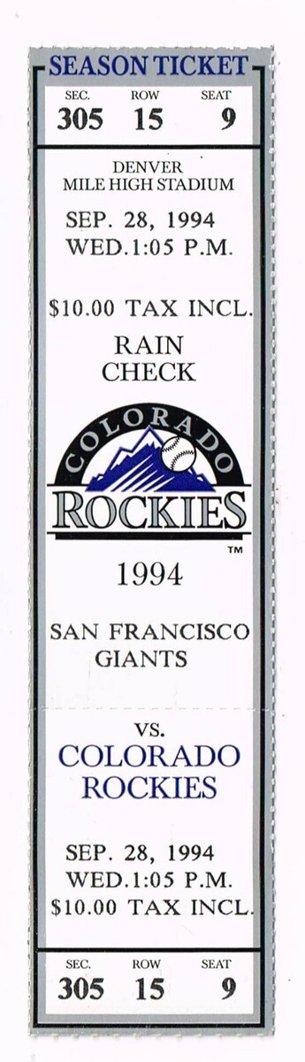 1994 Giants @ Rockies Full Unused Phantom Ticket Sept 28th Strike Year