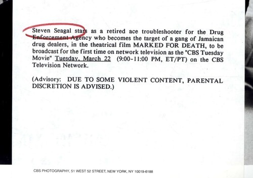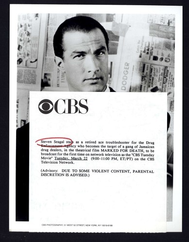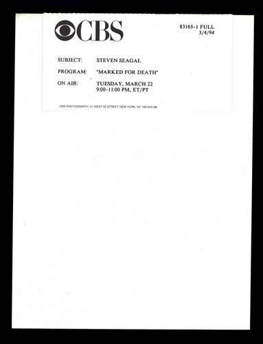 7 x 9 press photo CBS tv 1994 MARKED FOR DEATH movie STEVEN SEAGAL stars