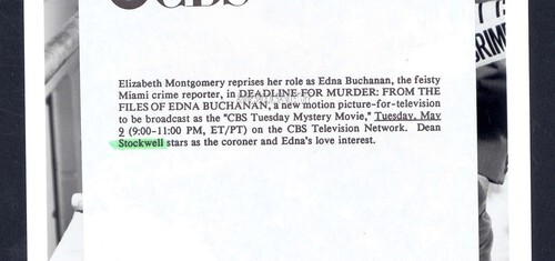 7 x 9 press photo CBS tv 1995 Mystery Movie ELIZABETH MONTGOMERY, DEAN STOCKWELL