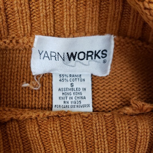 Vintage YarnWorks Sweater Womens S Mustard Brown Ramie Cotton Mock Neck HongKong