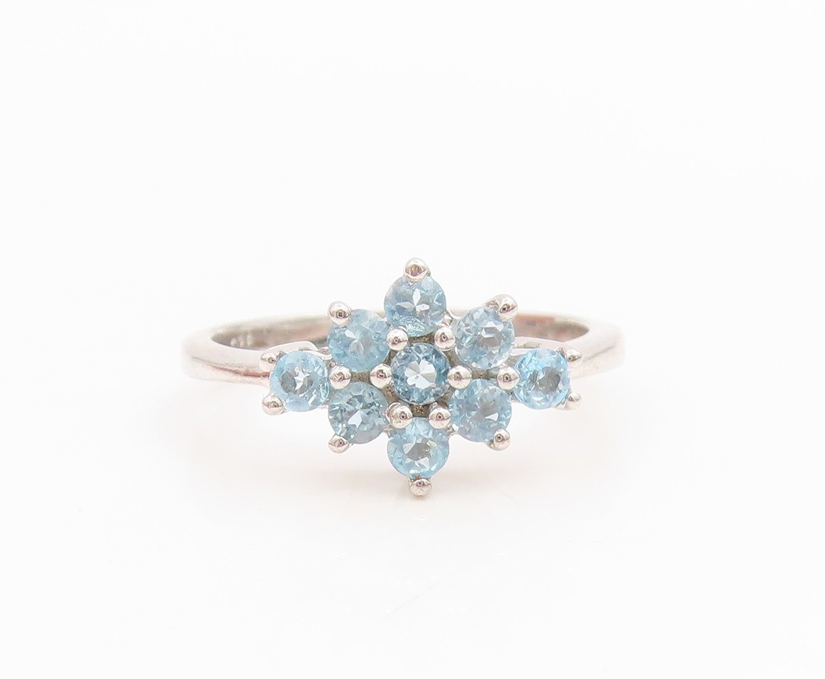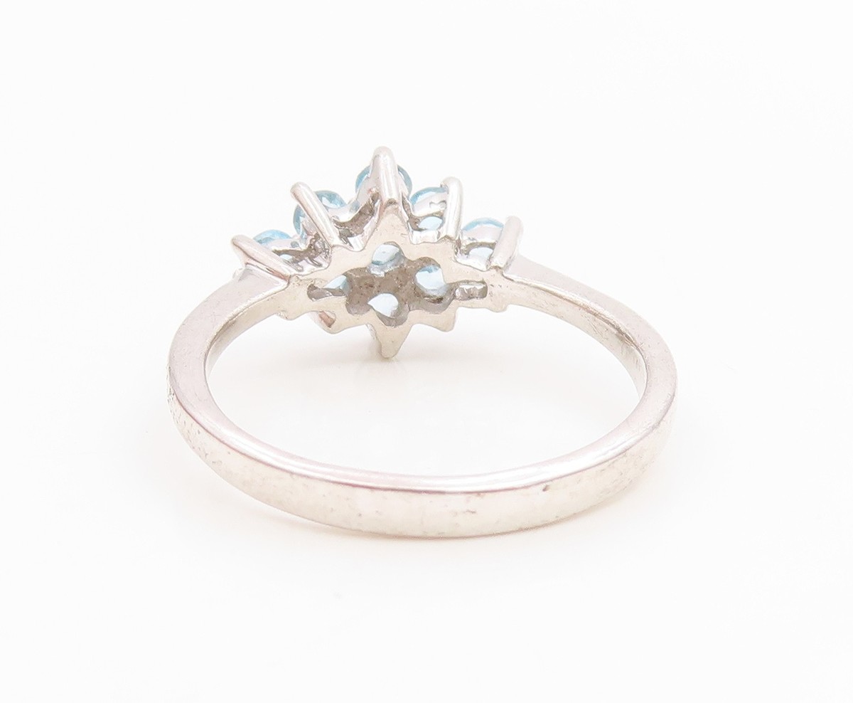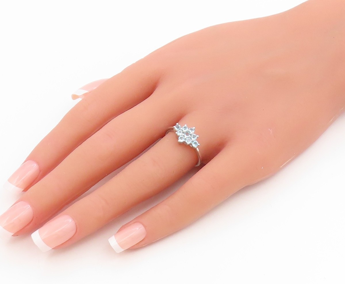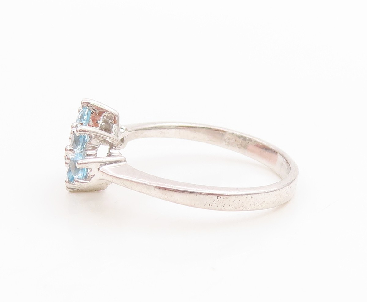 925 Sterling Silver Vintage Ring Elegant Blue Topaz Cluster Band Sz 7.5 RG36163
