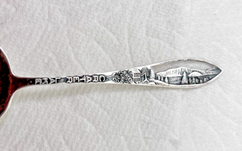 OLD Sterling Oregon Crater Lake Sugar Nut Scoop Open Work 4 1/2" Charles Robbins 4 1/2 inches long the spoon is 1 3/4 wide In very nice shape could use a bit more polishing