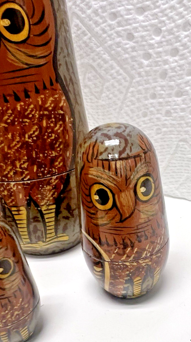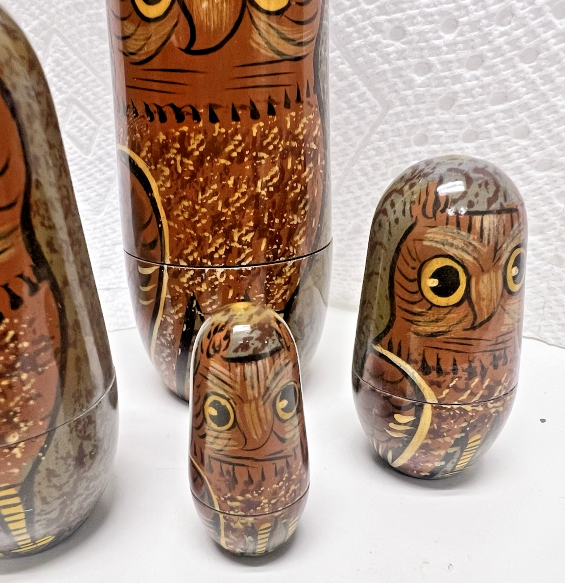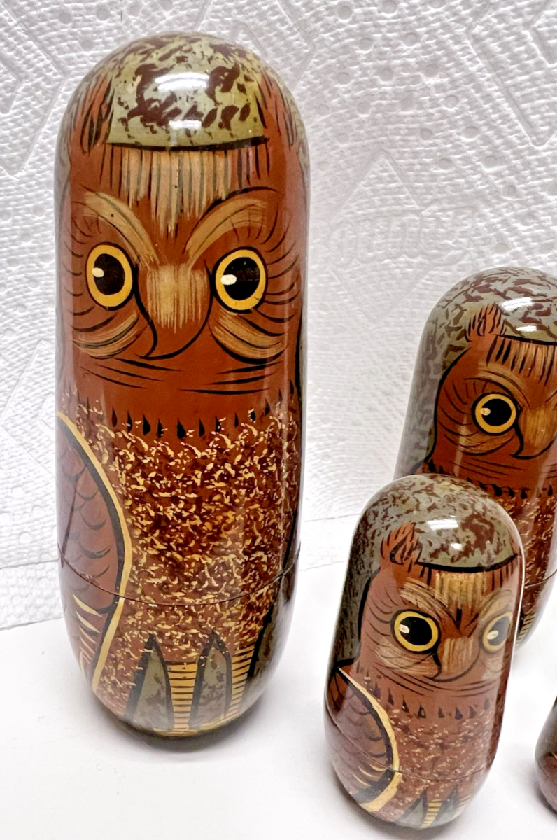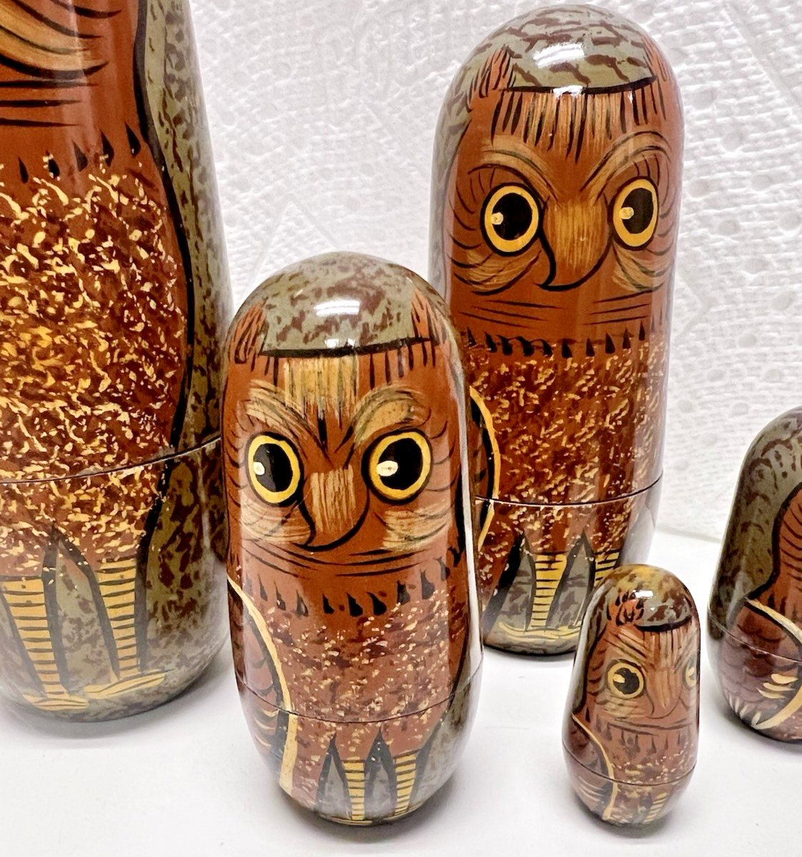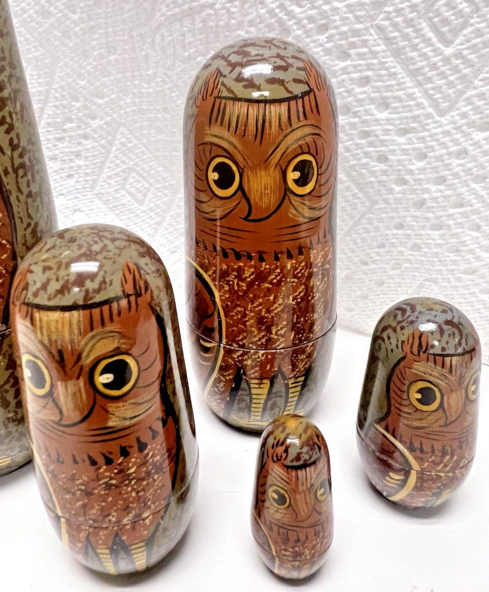5 Five Hand Painted Owl Nesting Dolls Largest 6 inches