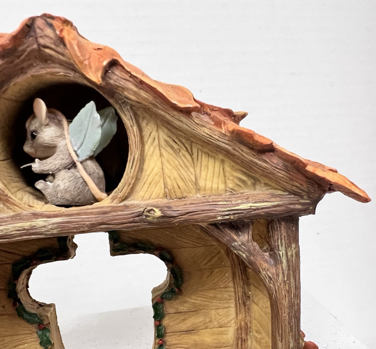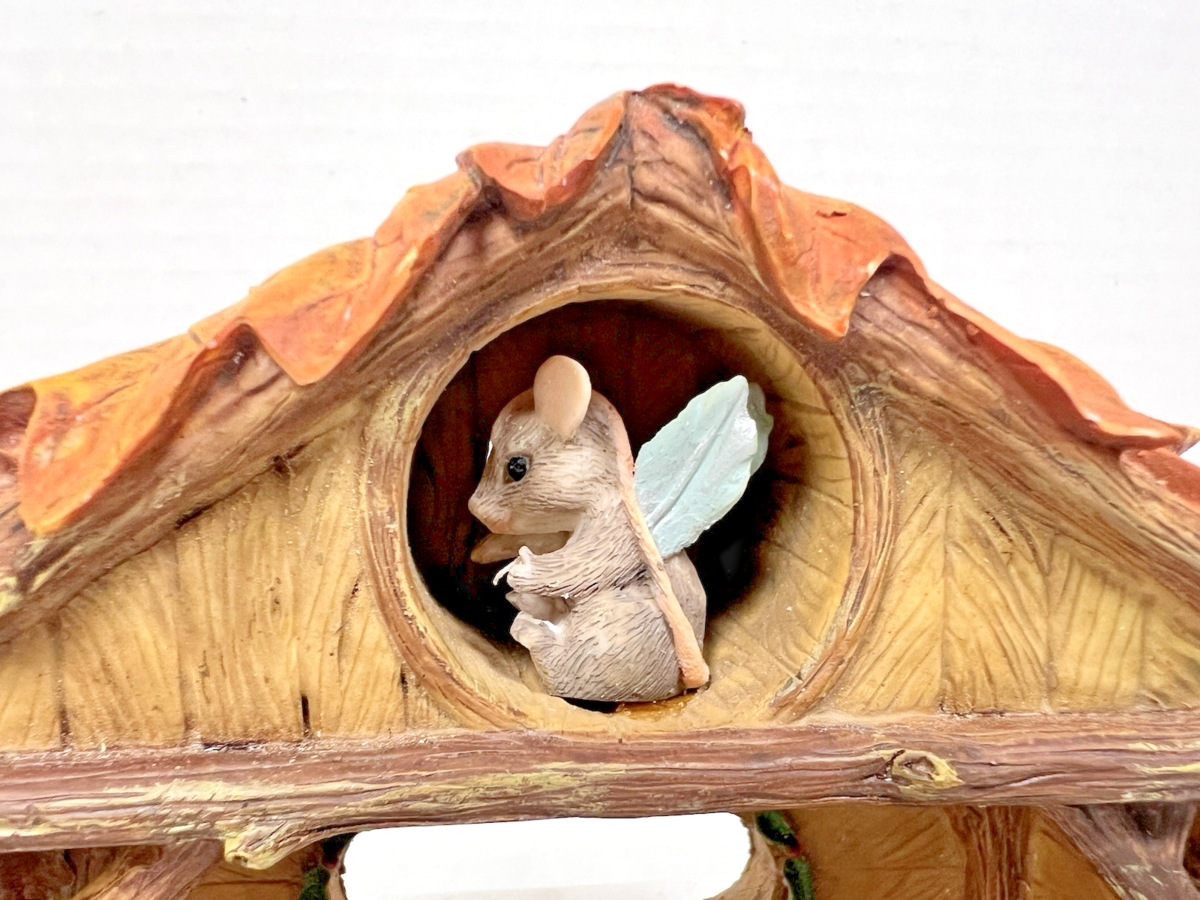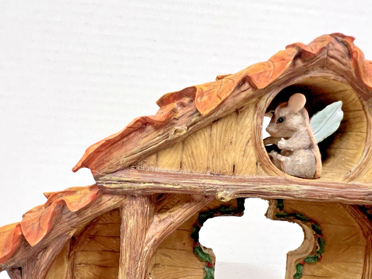 Silvestri Dean Griff Charming Tails Christmas Pageant Stage for Nativity Box. Original box, retail tag, Charming Tails Christmas Pageant Stage measures approx. 7 3/4" long and 5" tall. Pageant stage has holly outlined cross door and a mouse in the attic, great condition, couple of eave ends nicked, otherwise very nice condition. See pictures.