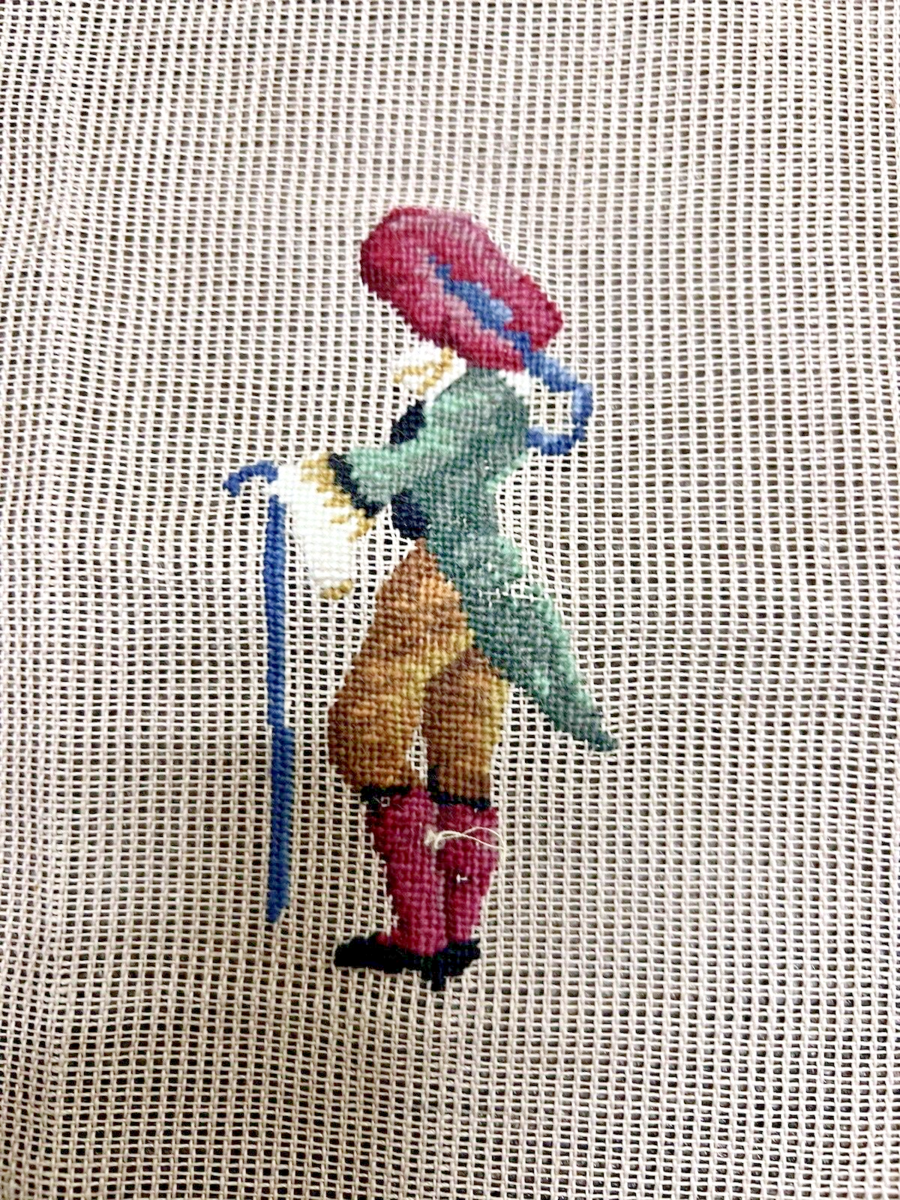 Vintage Fancy Dressed Man w Walking Stick Needlepoint Canvas 13 x 12.5"
